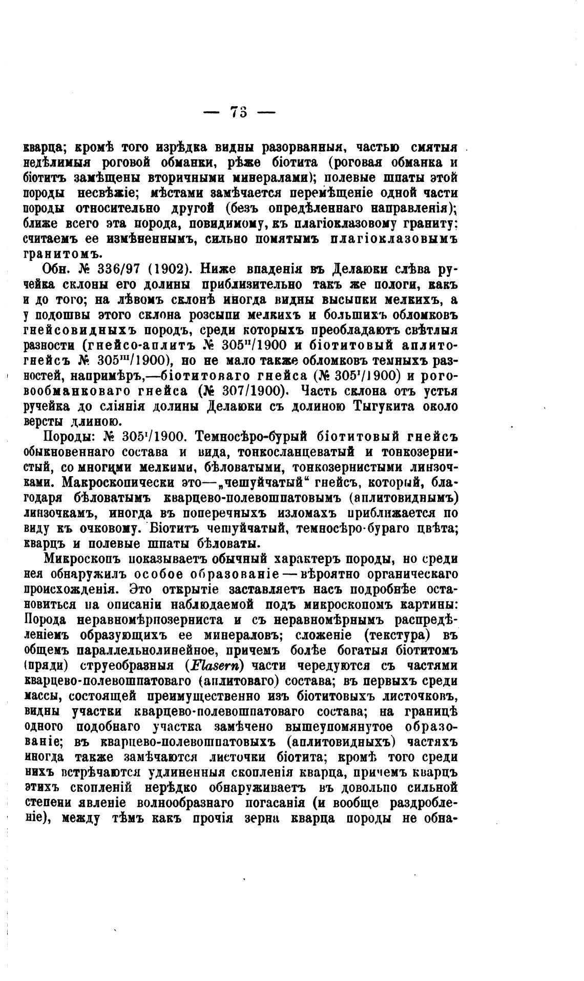 гнейсъ М. 305JII/1900), но не мало также обломковъ темныхъ раз-