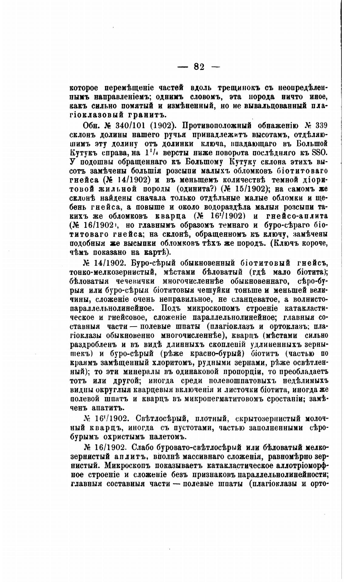 кихъ же обломковъ кварца (М 1902) и гнейсо-аплита