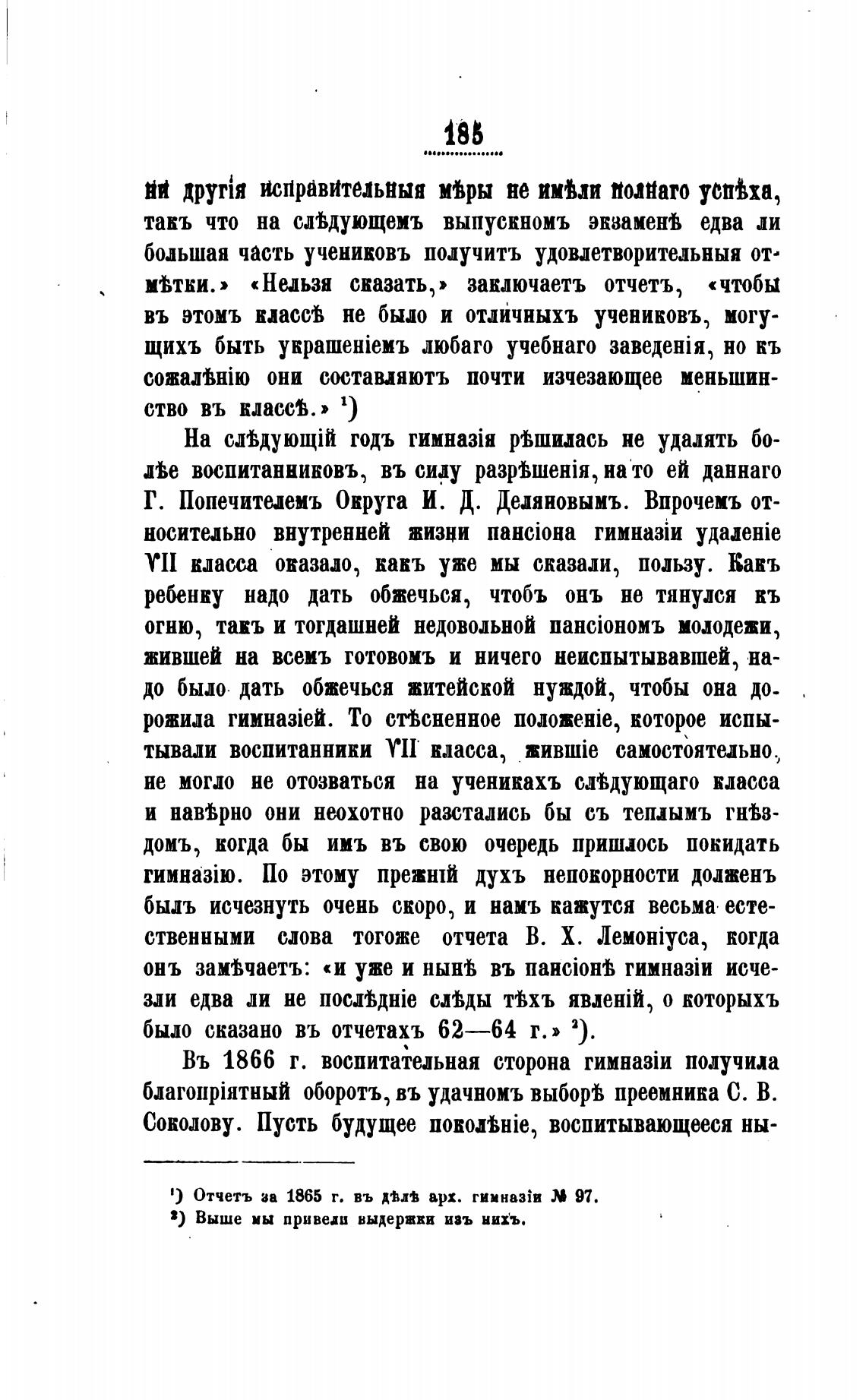 1) Отчетъ за 1865 г. въ арх. гимназ\и 97.