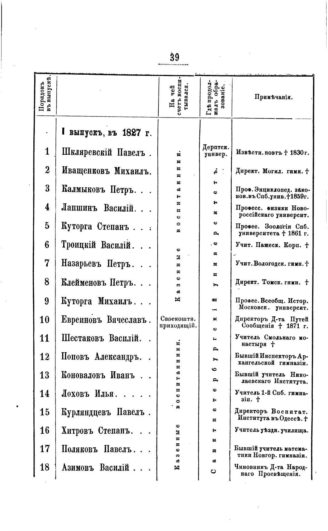 I выпускъ, въ 1827 г.
