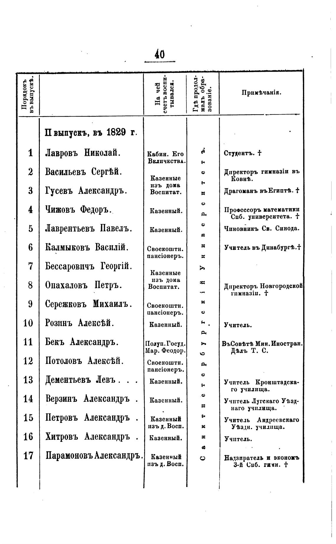 П выпускъ, въ 1829