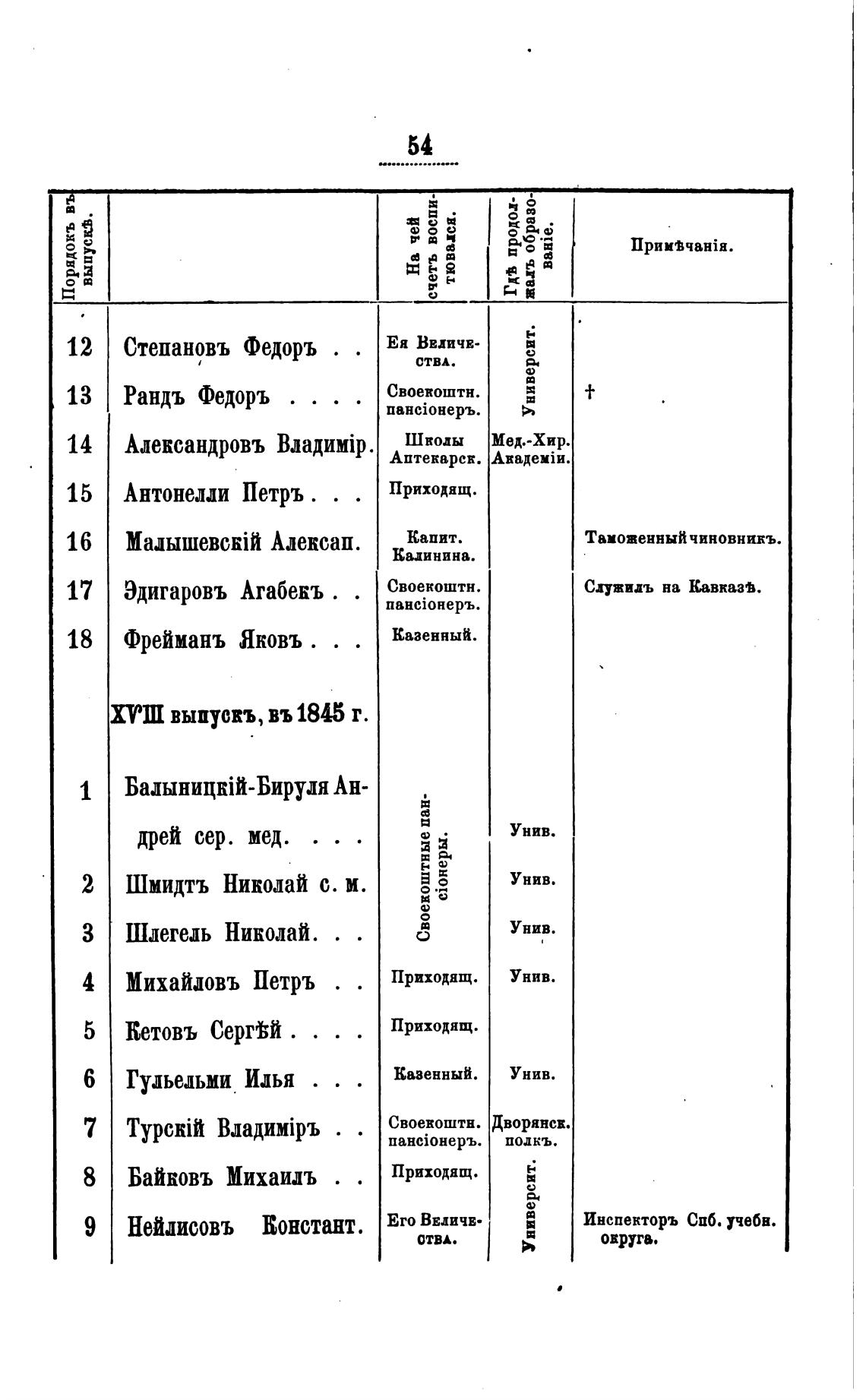 выпускъ, въ 1845 г.
