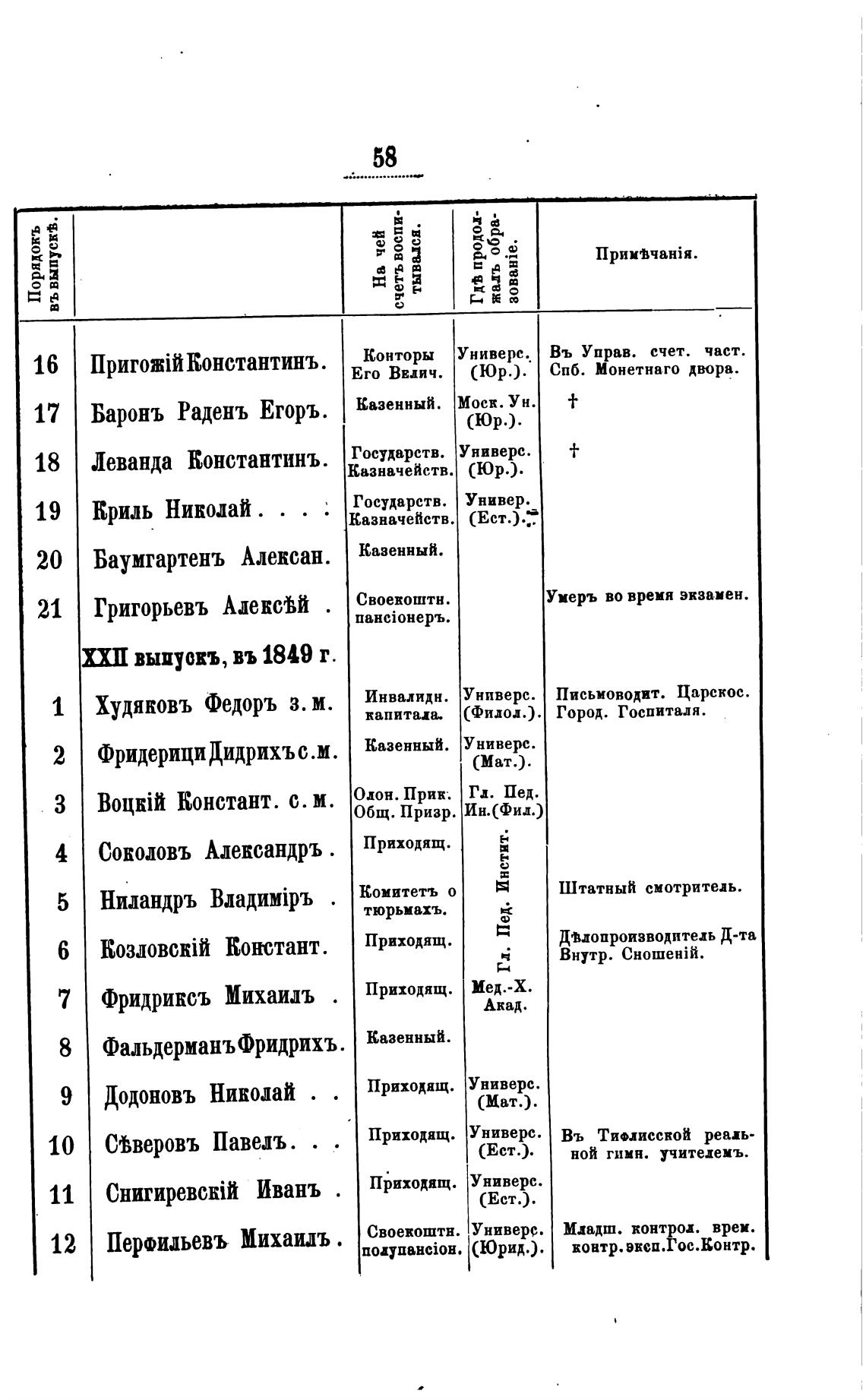 выиускъ, въ 1849 г.