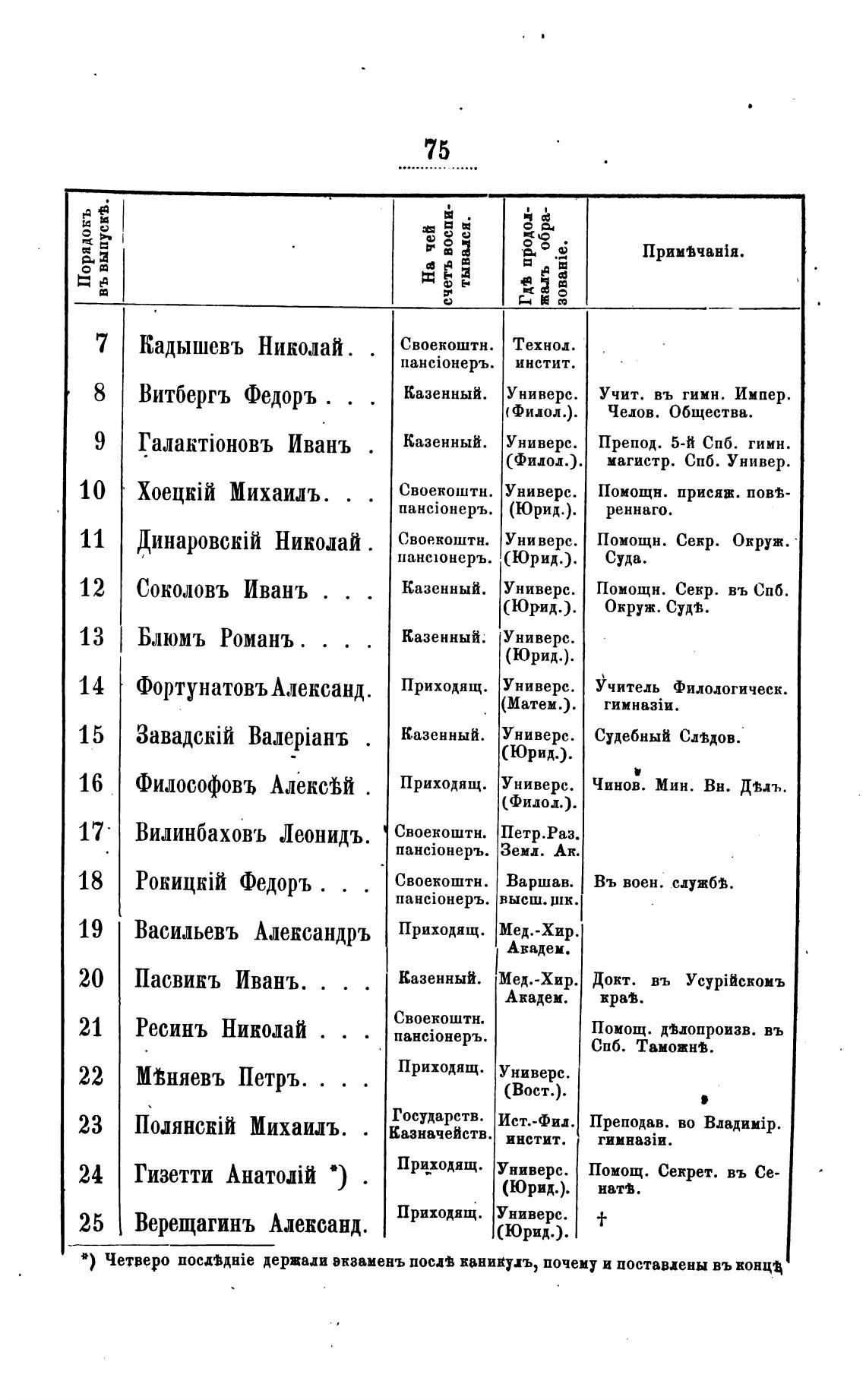 • ) Четверо noca'MHie держали экзаменъ посп ваникудъ, почему и поставлены въ конца