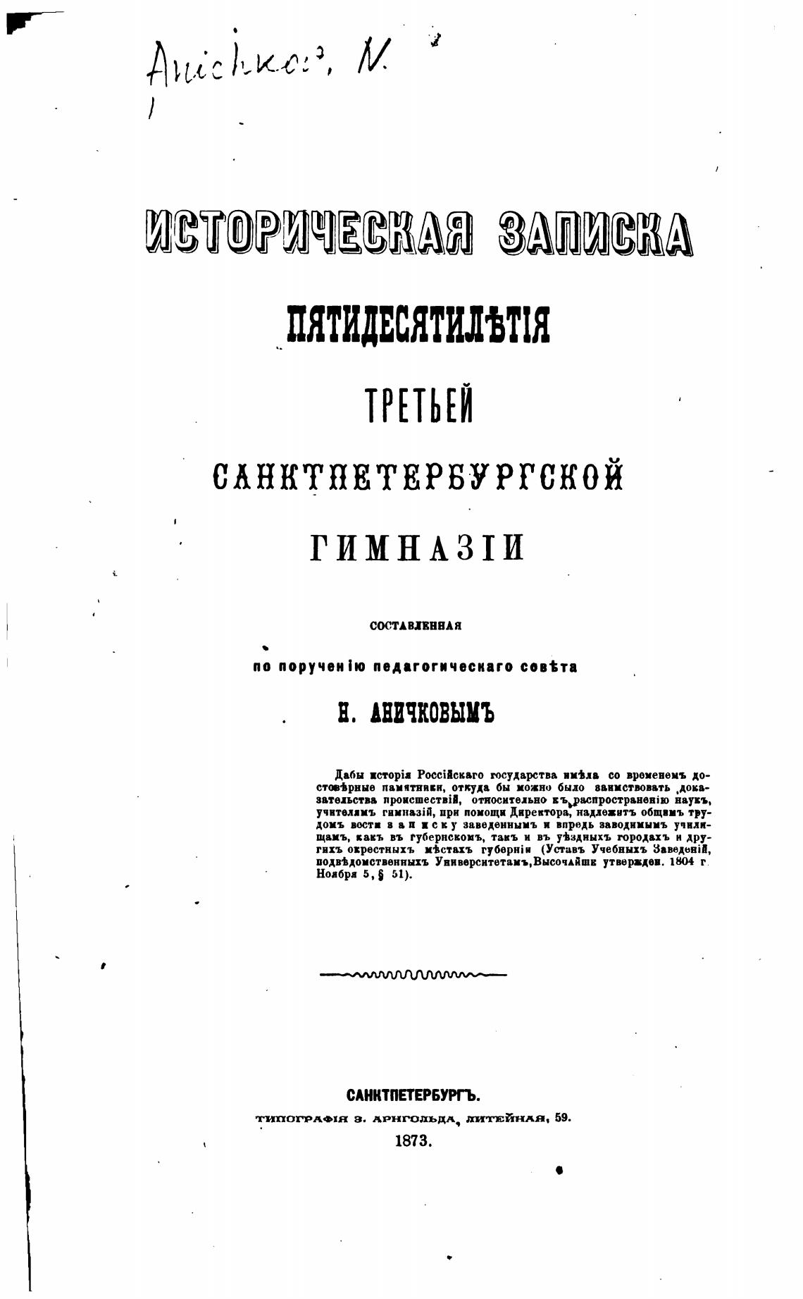 ТИПОГРАФIЯ В. АРНГОДЬДА диттЙНАЯ, 59.