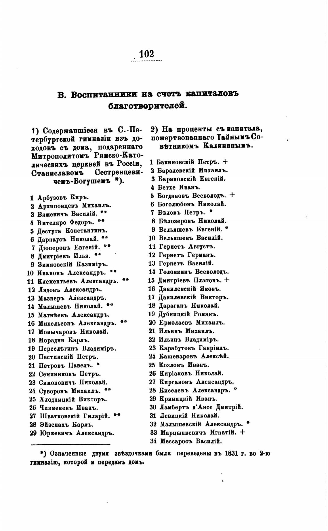 Означенные двумя зввздочваии быди переведены въ 1831 г. во 2-ю