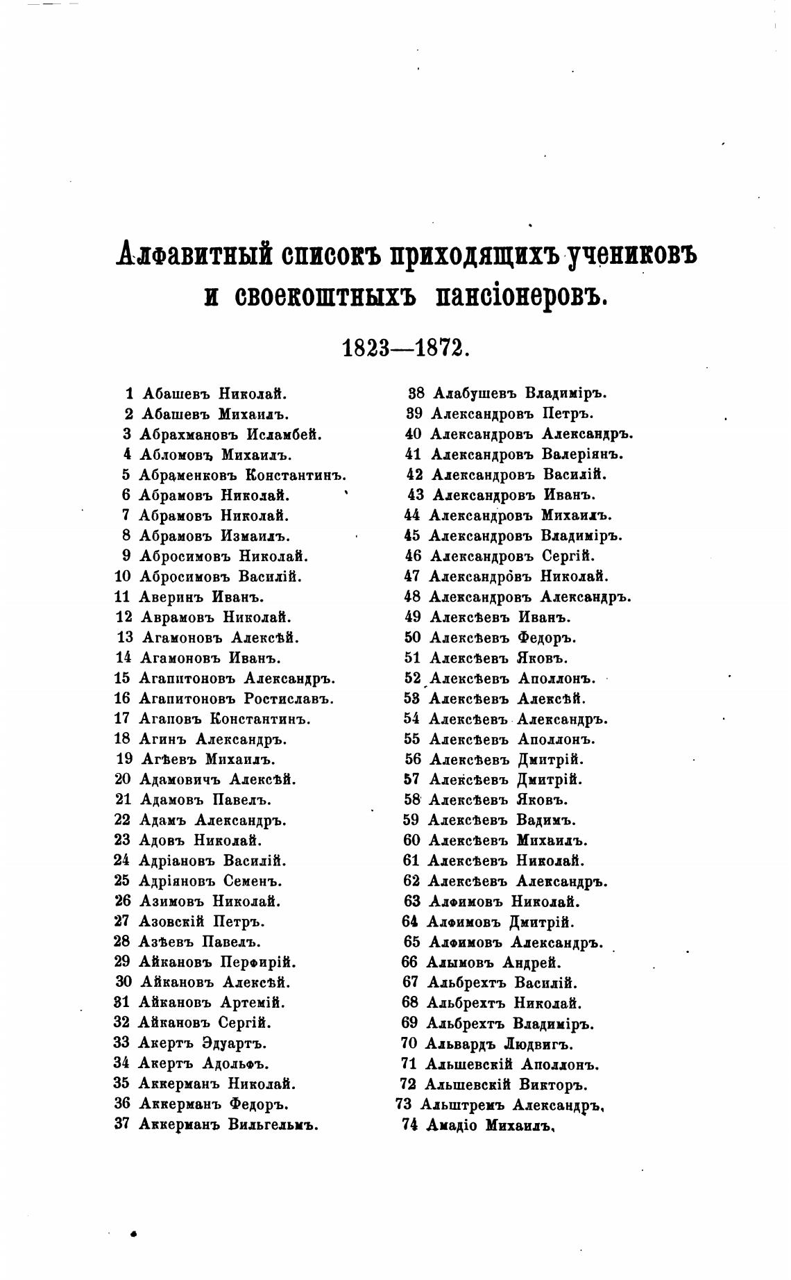 Апавитный списокъ приходящихъ учениковъ