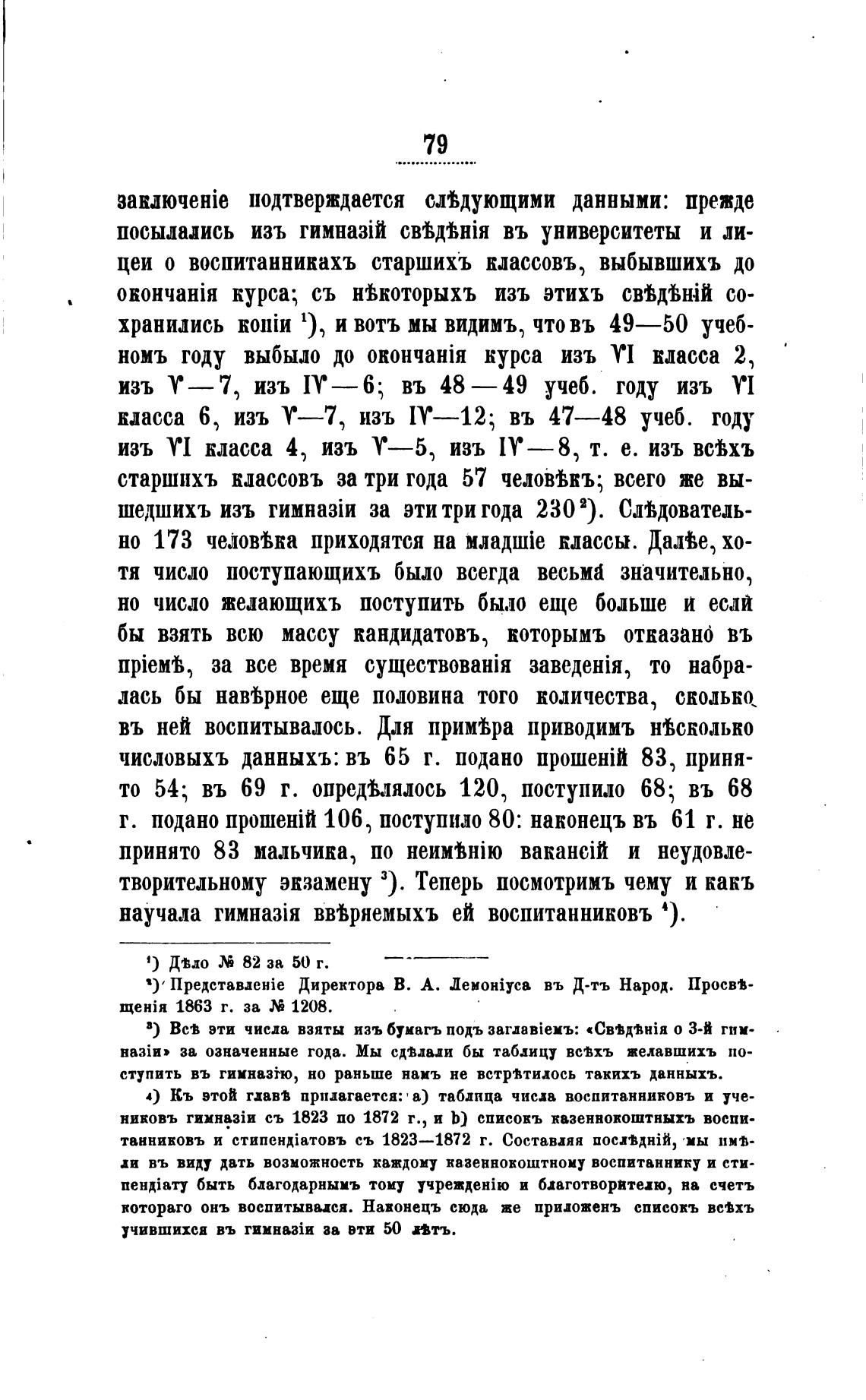 никовъ съ 1823 по 1872 г., и Ь) списокъ казеннокоштныхъ воспи-
