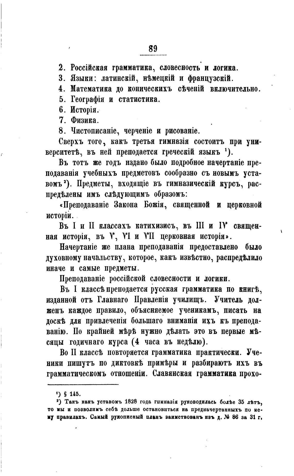 учебныхъ предметовъ сообразно съ новымъ уста-