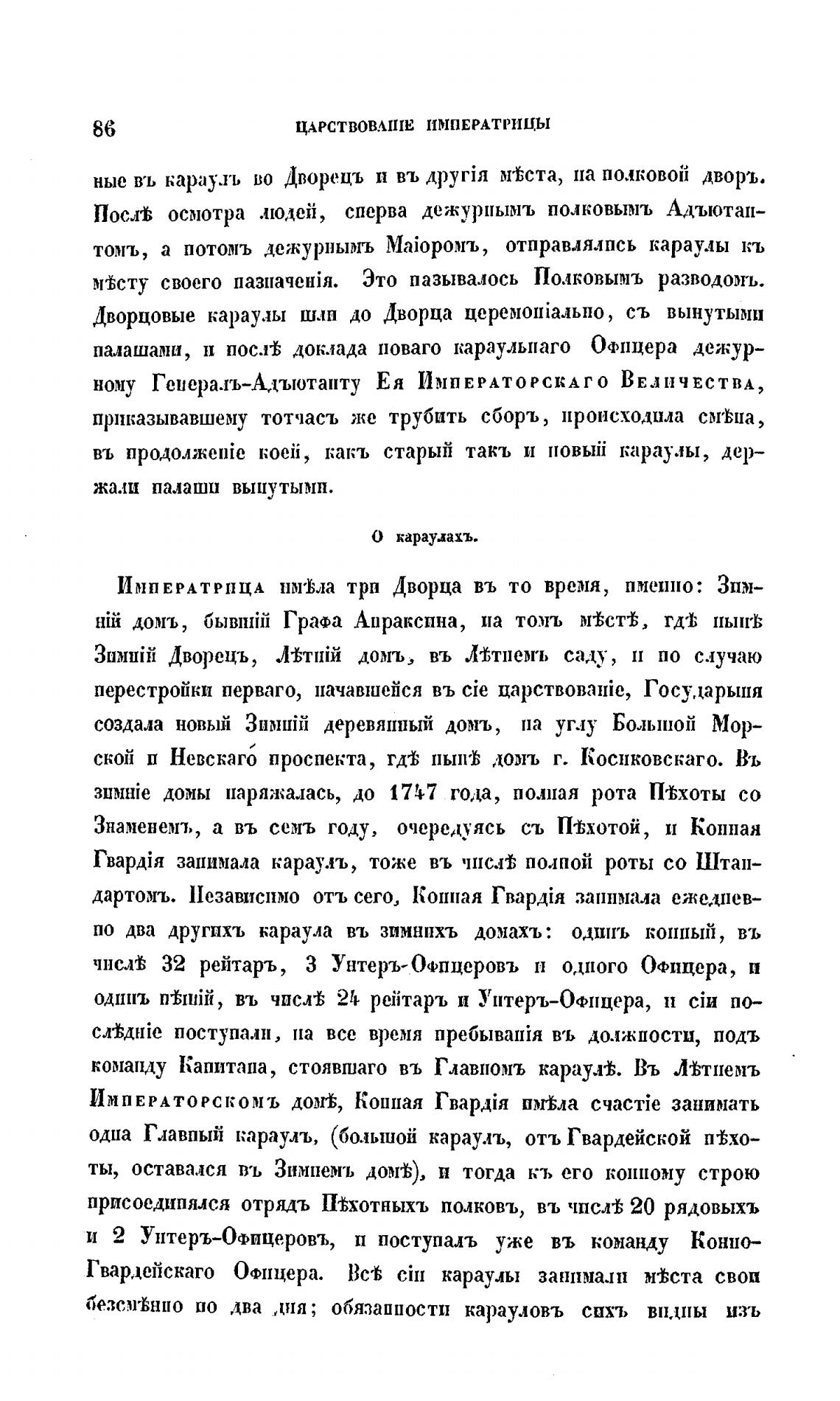 ные въ карауль во Дворецъ н въ м%ста, на полковой дворъ.