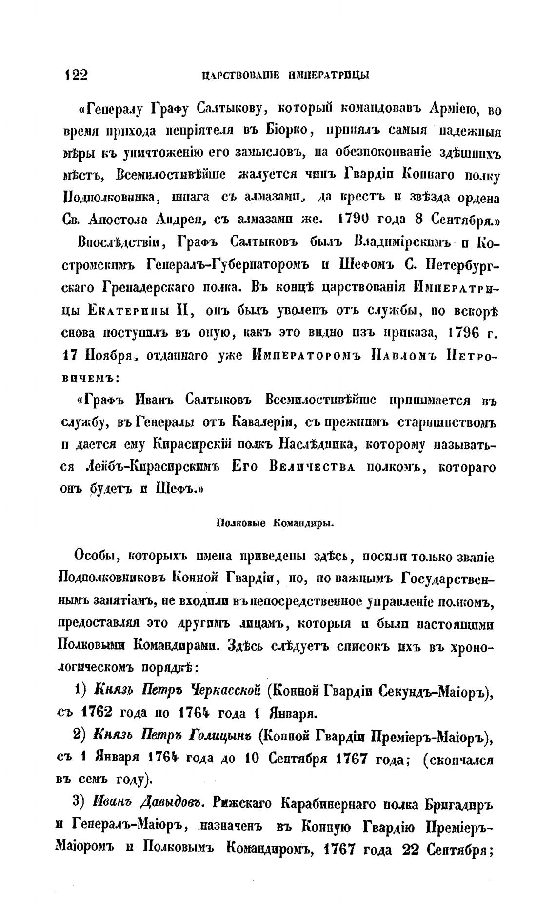 Полковыми Командирами. Зд%сь сл%дуетъ списокъ пхъ въ хроно-