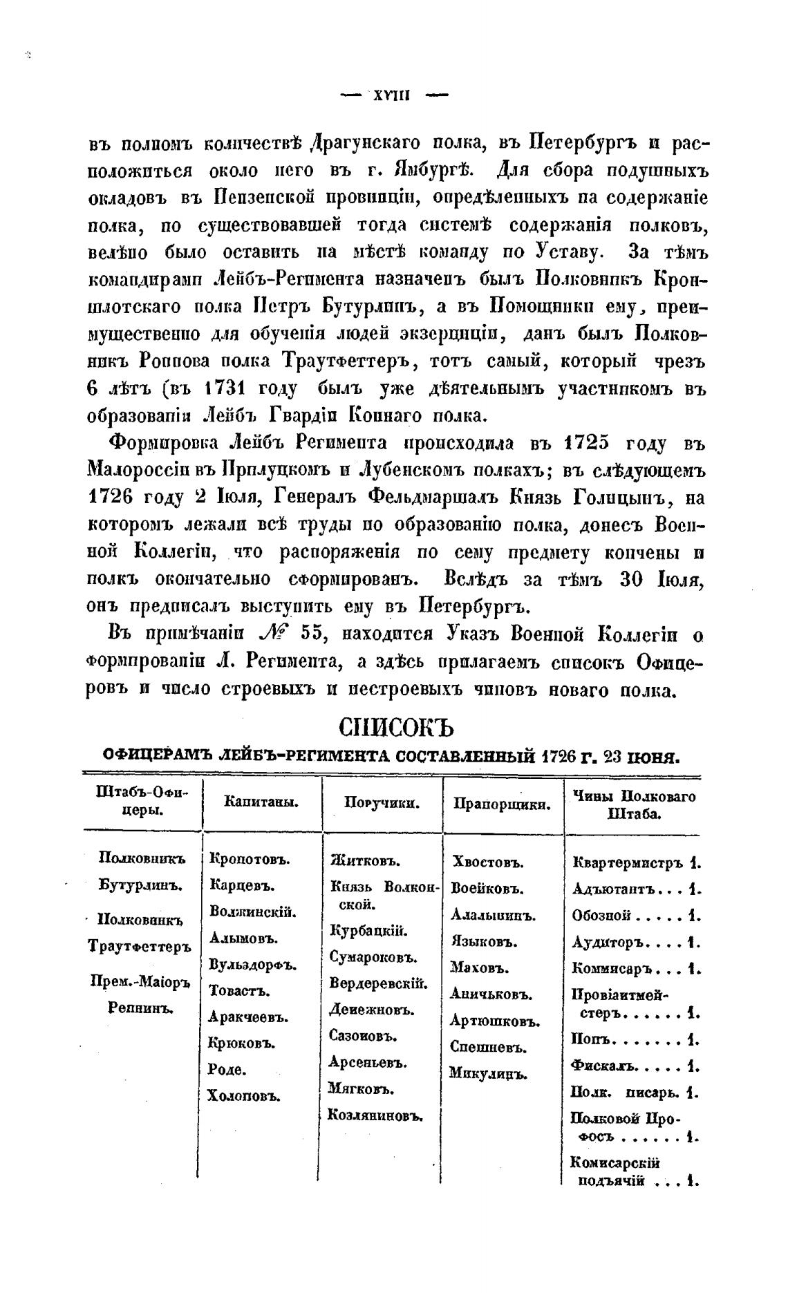 Формировка Лейбъ Регимепта происходила въ 1725 году въ