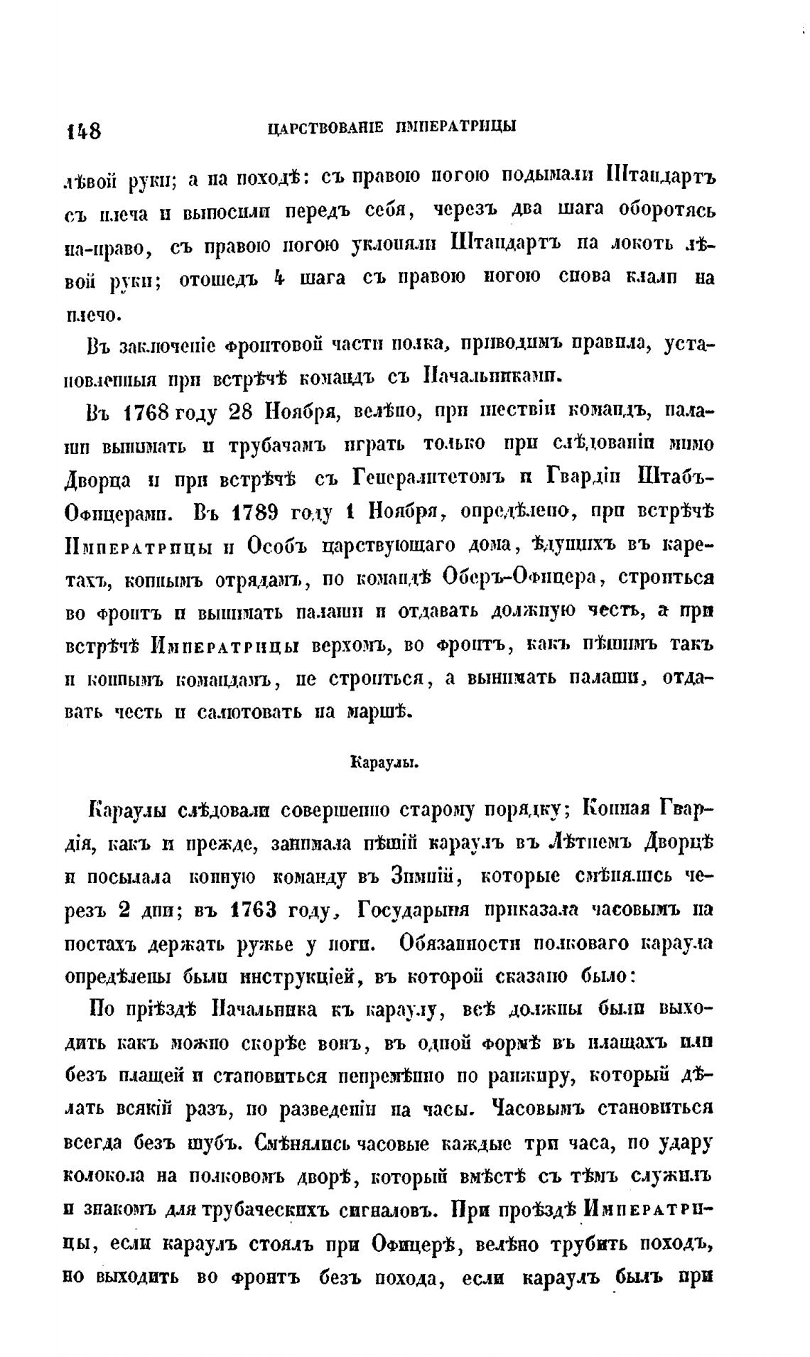 резь 2 дни; въ 1763 году, Государыня приказала часовымъ па