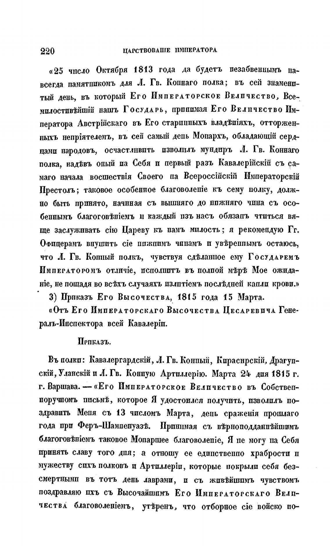 З) Прпказъ Его ВЫСОЧЕСТВА, 1815 года 15 Марта.