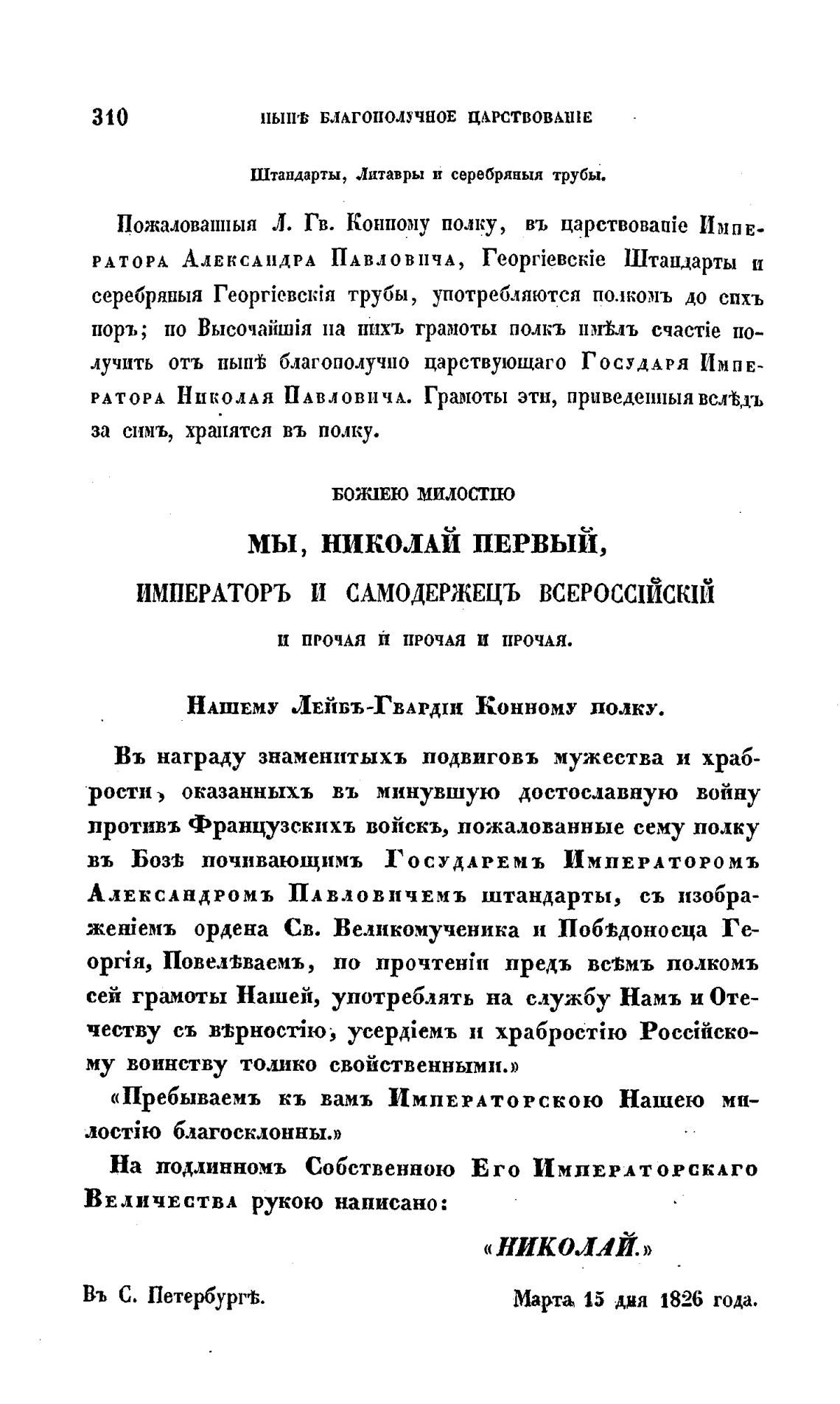 Пожаловаппыя Л. Гв. Конному полку, въ Импв-