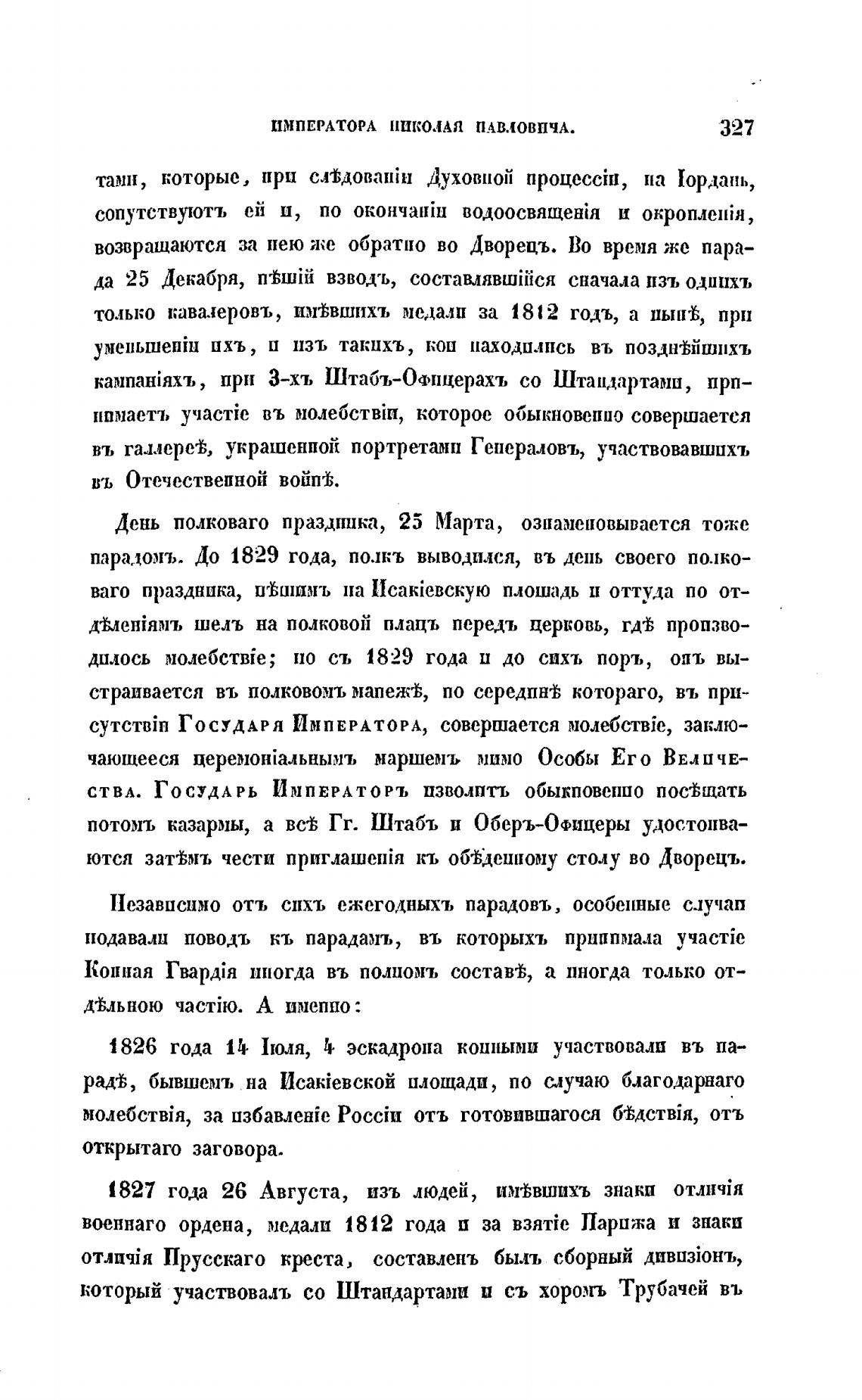 парадомъ. До 1829 года, полкъ выводился, въ день своего полко-