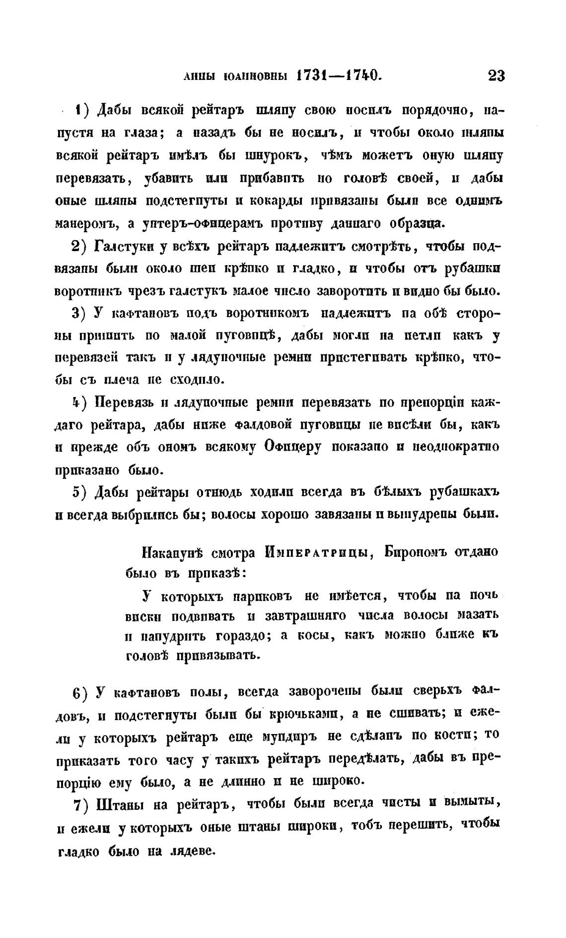 5) Дабы рейтары отнюдь ходилп всегда въ б%лыхъ рубашкахъ