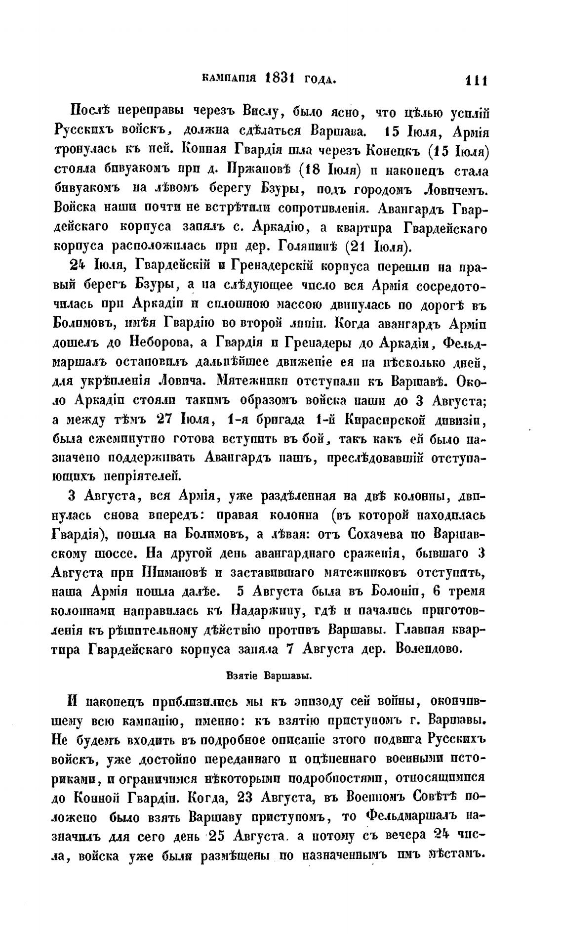 Русскпхъ войскъ, должна сд%латься Варшава.