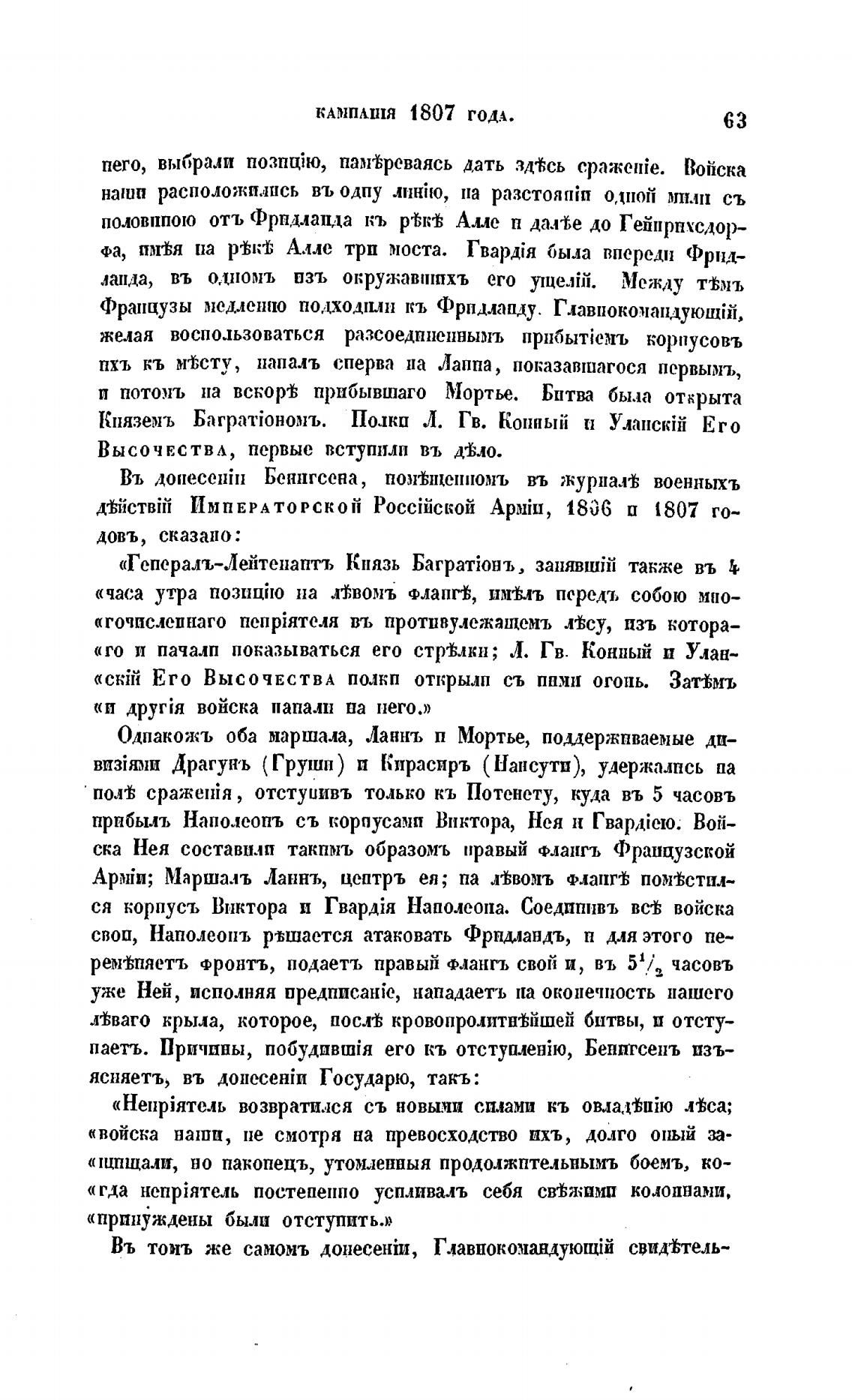 Въ донесеТп Беннгсена, пом%щеииомъ въ журнал% военныхъ