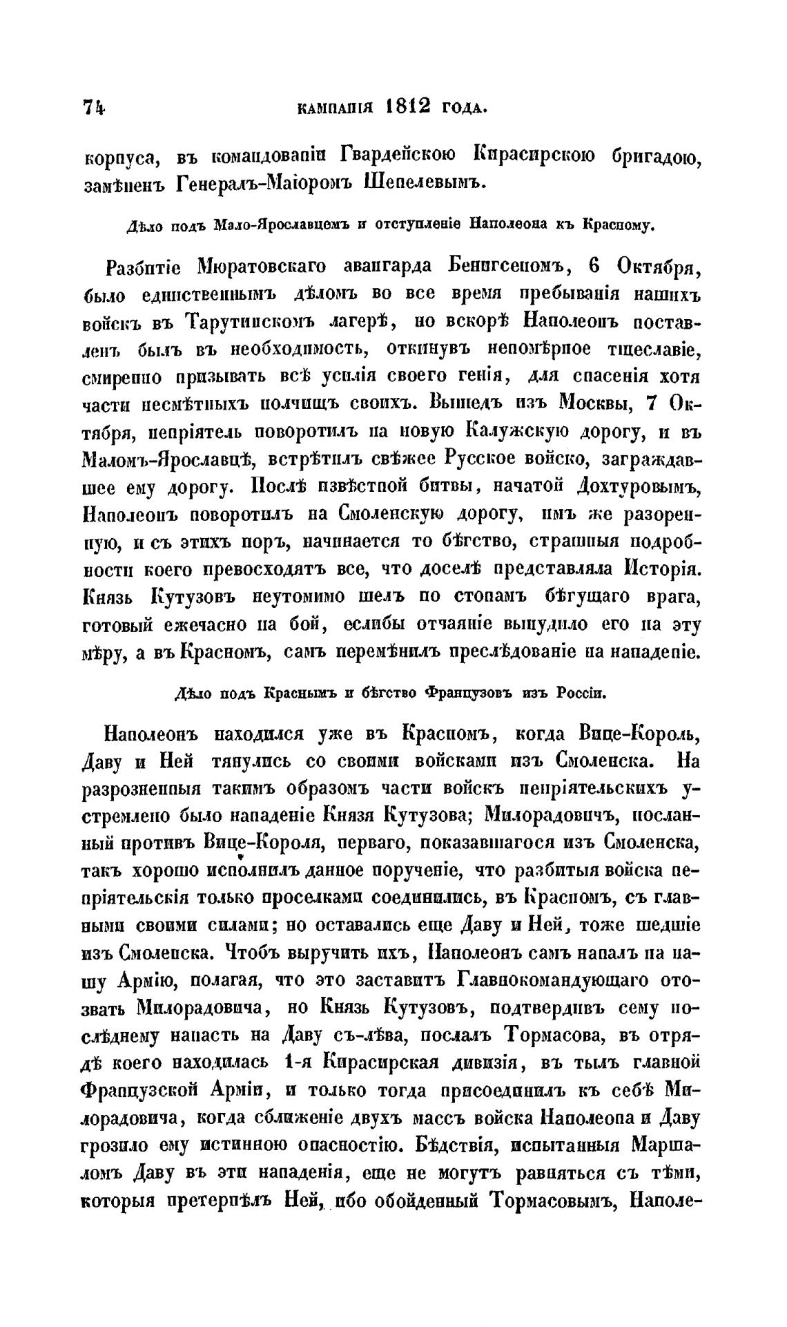 Князь Кутузовъ неутомимо шель по стопамъ б%гущаго врага,