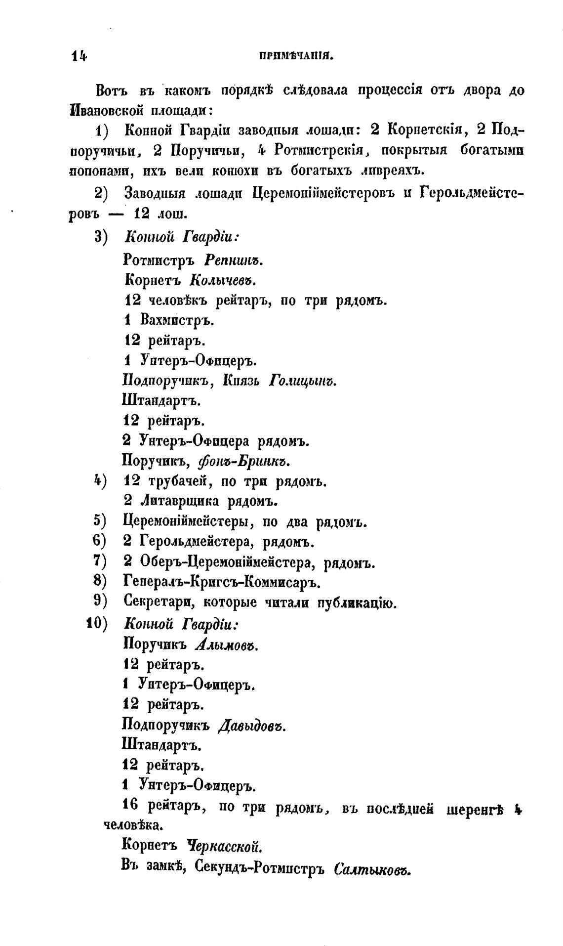Вотъ въ какомъ порядк% сл%довала отъ двора до