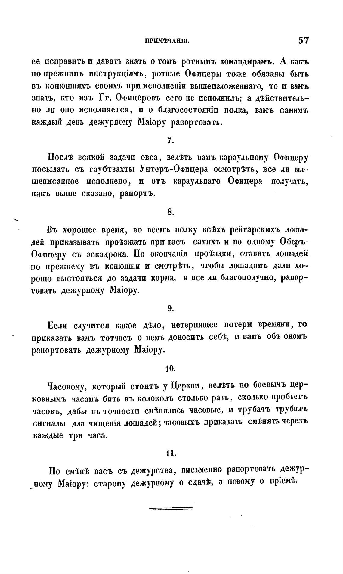 сигналы для чищенВ1 лошадей ; часовыхъ приказать см%нять черезъ