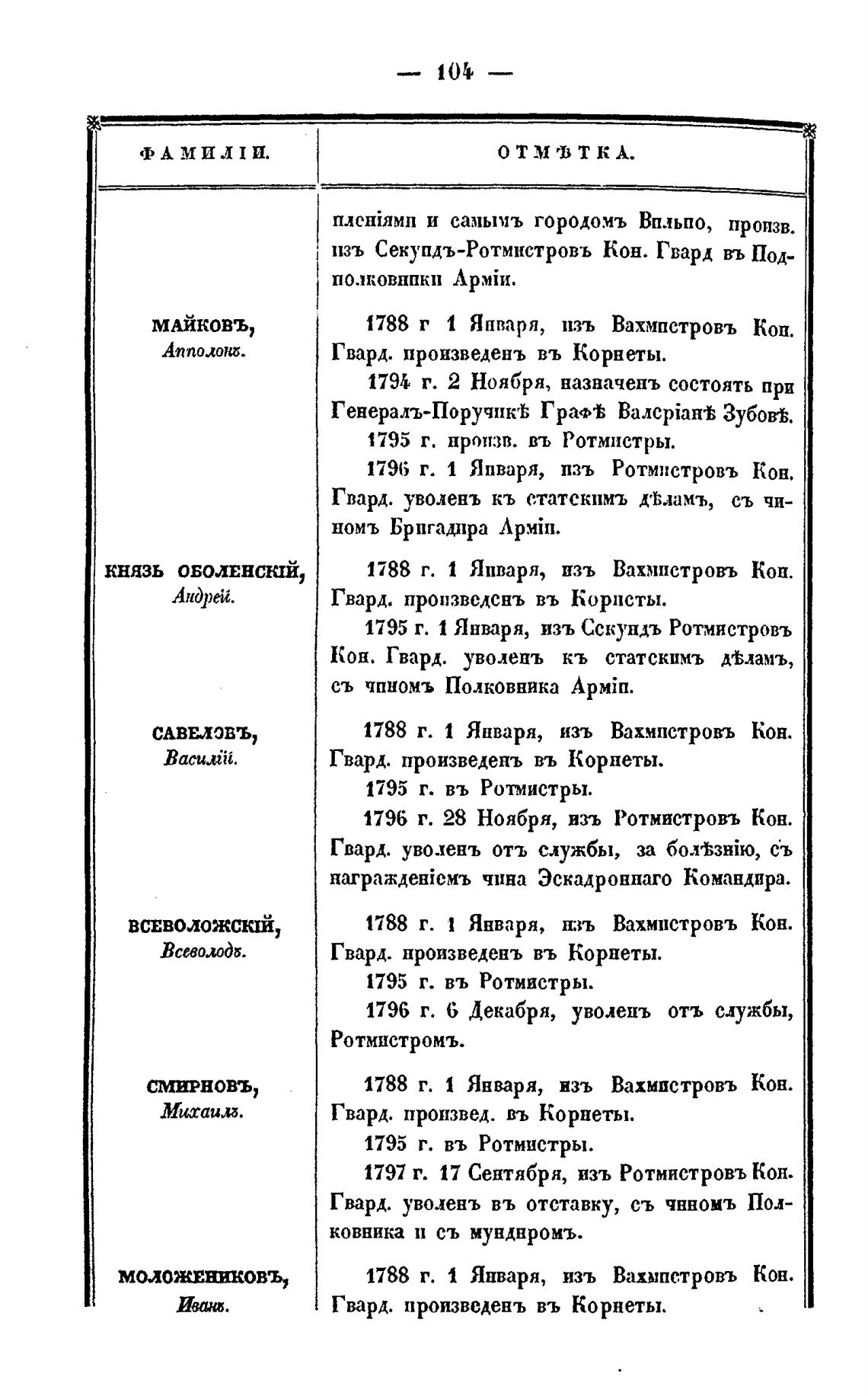 1796 г. 6 Декабря, уволепъ отъ службы,