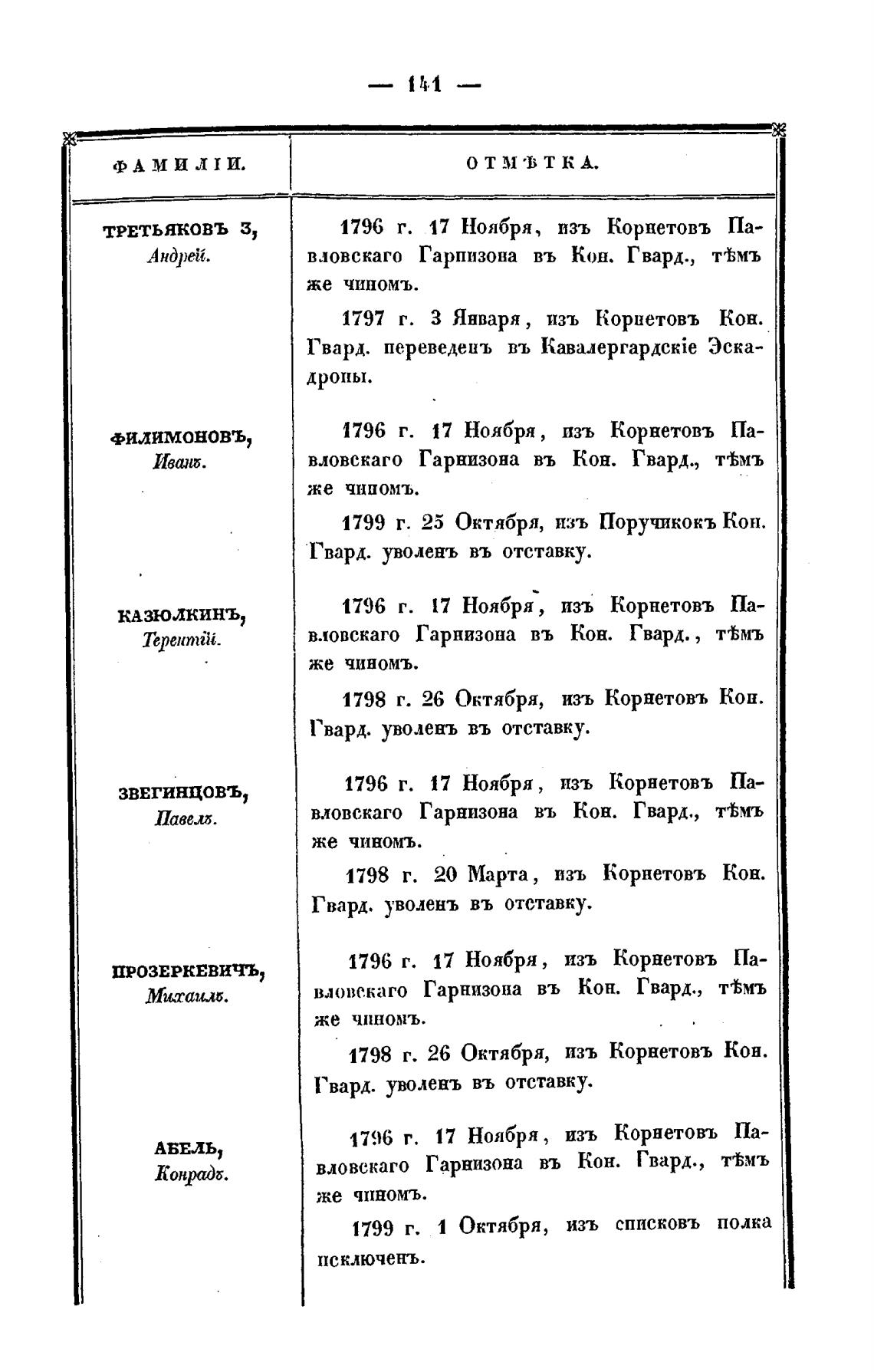 1796 г. [7 Ноября , изъ Корнетовъ Па-