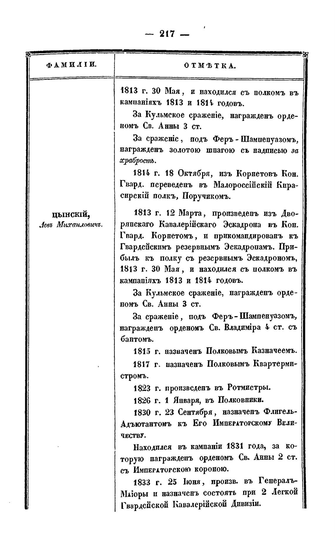 1817 г. назначень Полковымъ Квартерми-