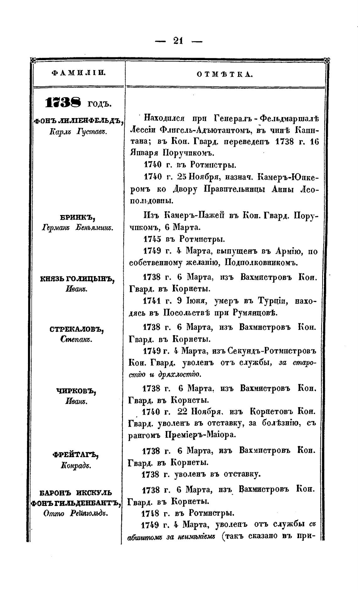 тапа; въ Кон. Гвард. переведепъ 1738 г. 16