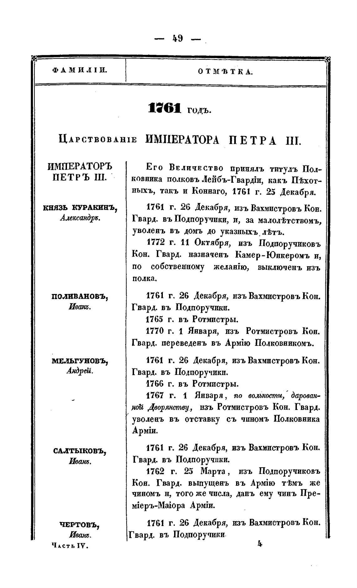 1762 г. 25 Марта , изъ Подпоручиковъ