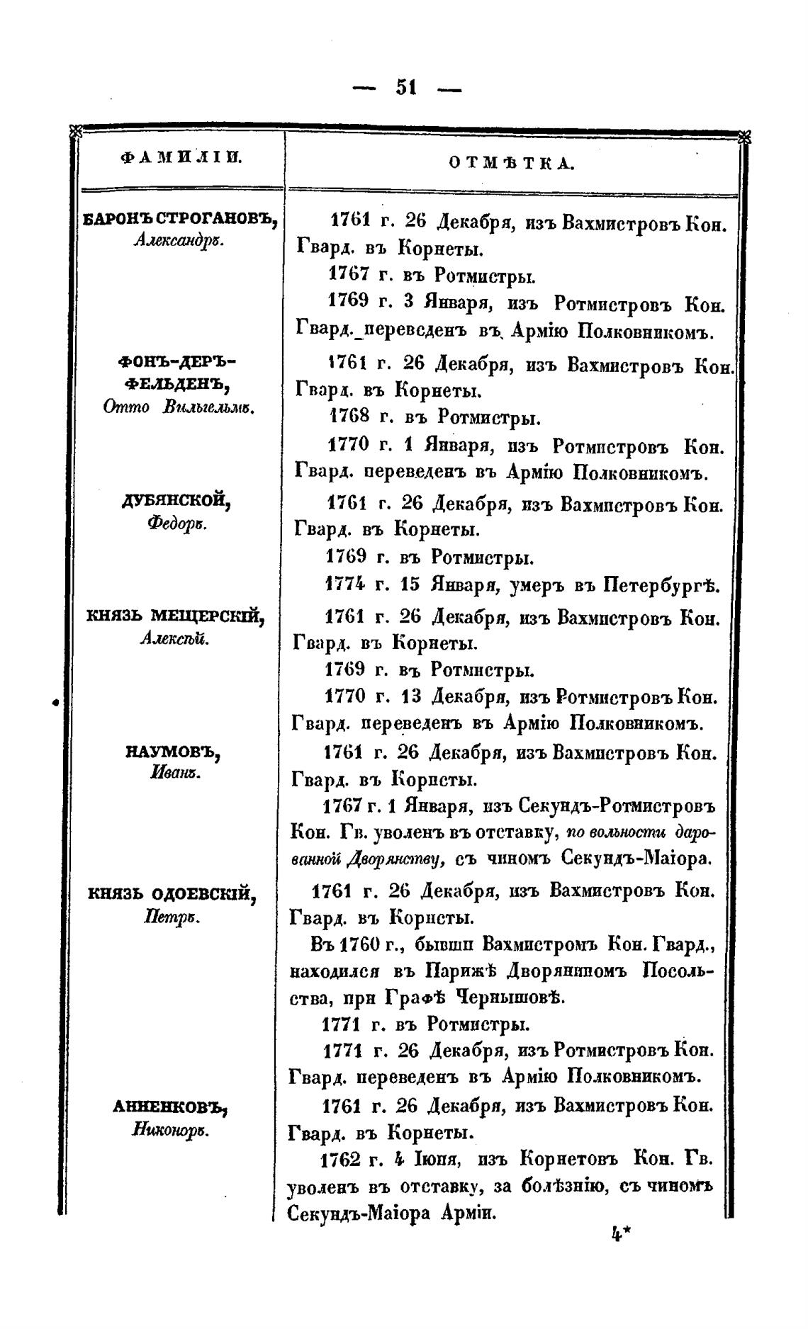 Въ 1760 г., бывши Вахмистромљ Кон. Гвард.,
