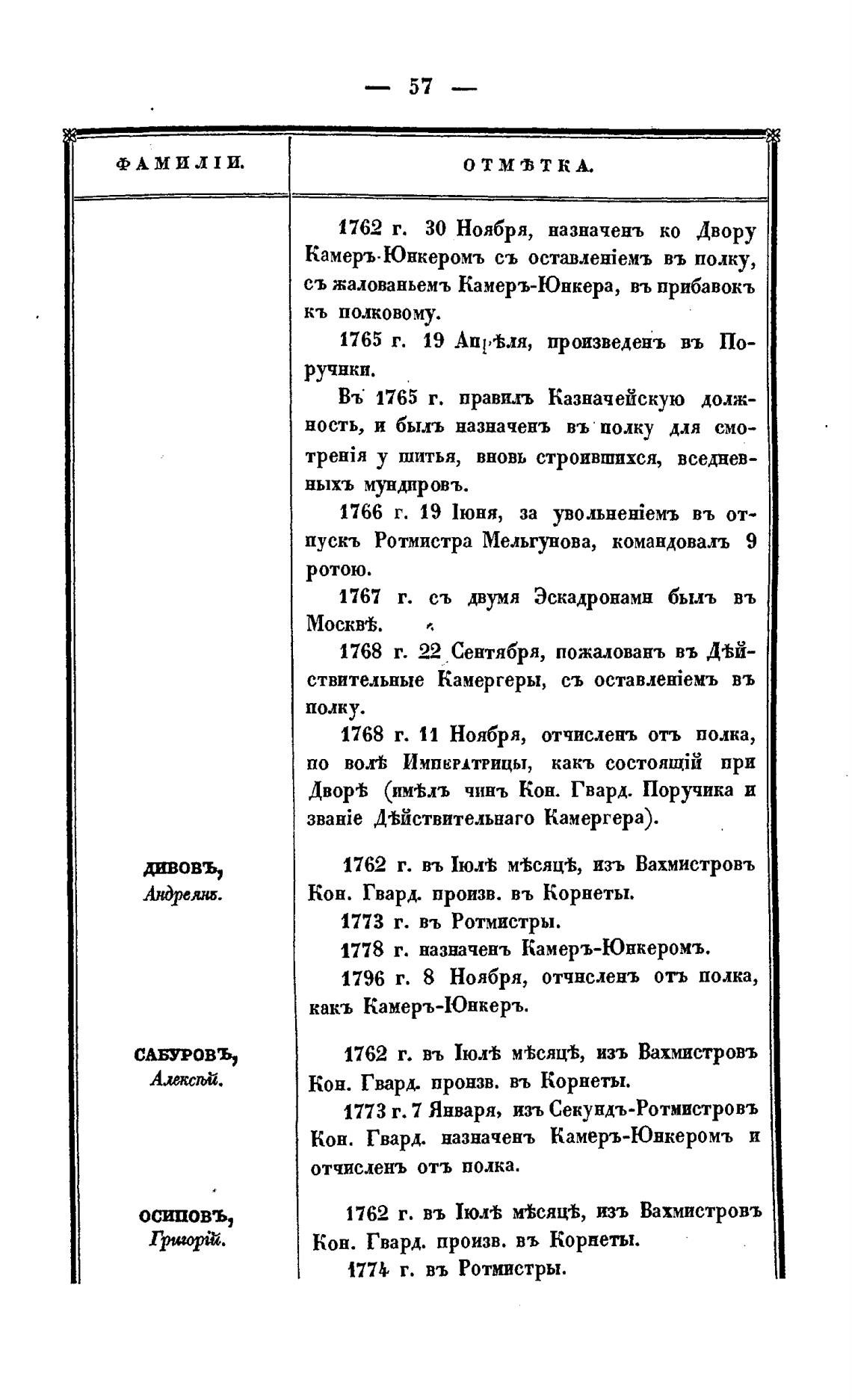 1762 г. въ 1юл•Ь м%сящЬ, изъ Вахмистровъ