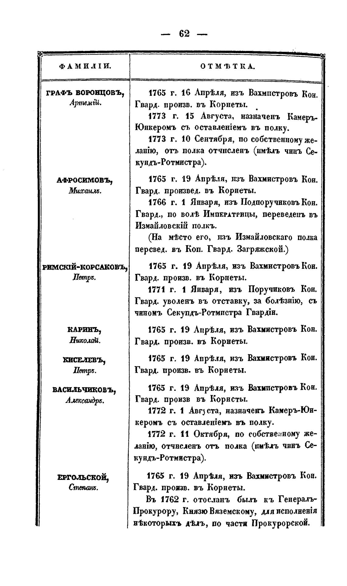 РИМСЮЙ-КОРСАКОВЪ, 1765 г. 19 Апр±ля, изъ Вахмистровъ Кон.