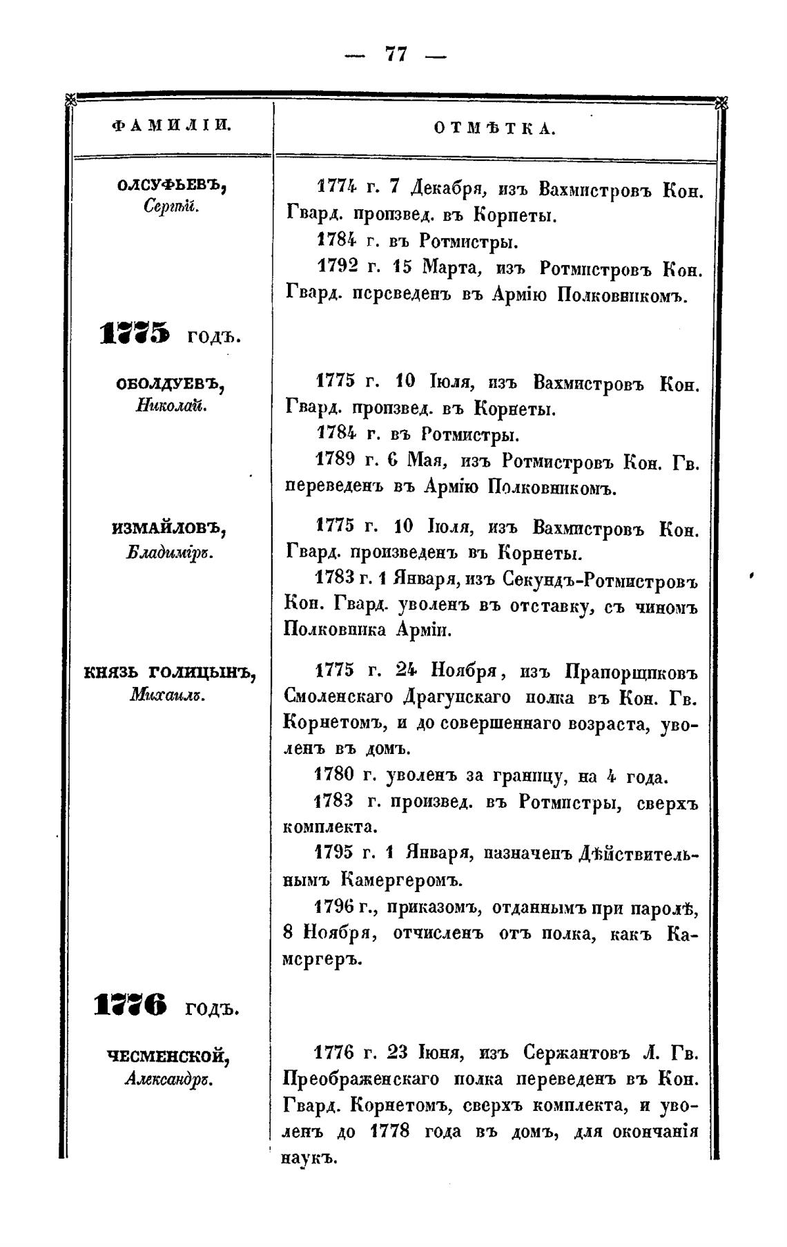 КНЯЗЬ голицынъ, 1775 г. Ноября, изъ Прапорщпковъ