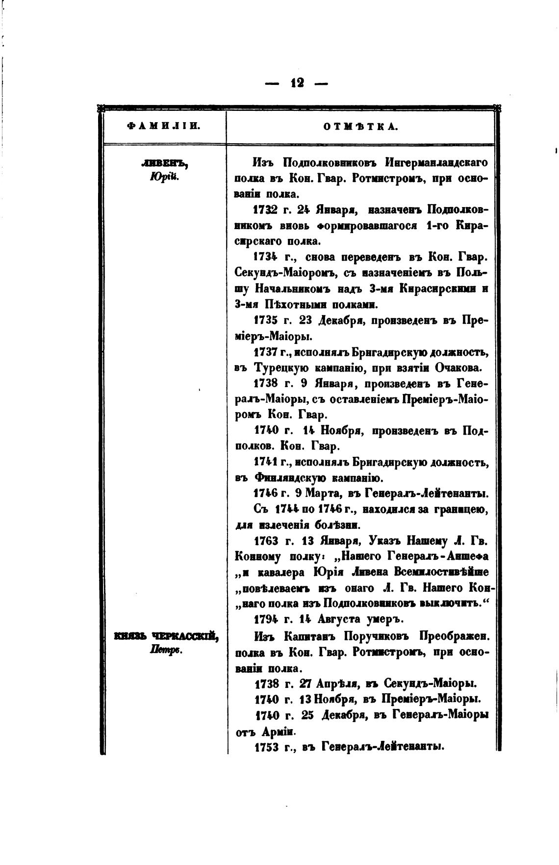 1735 г. 23 Декабря, произведень въ Пре-