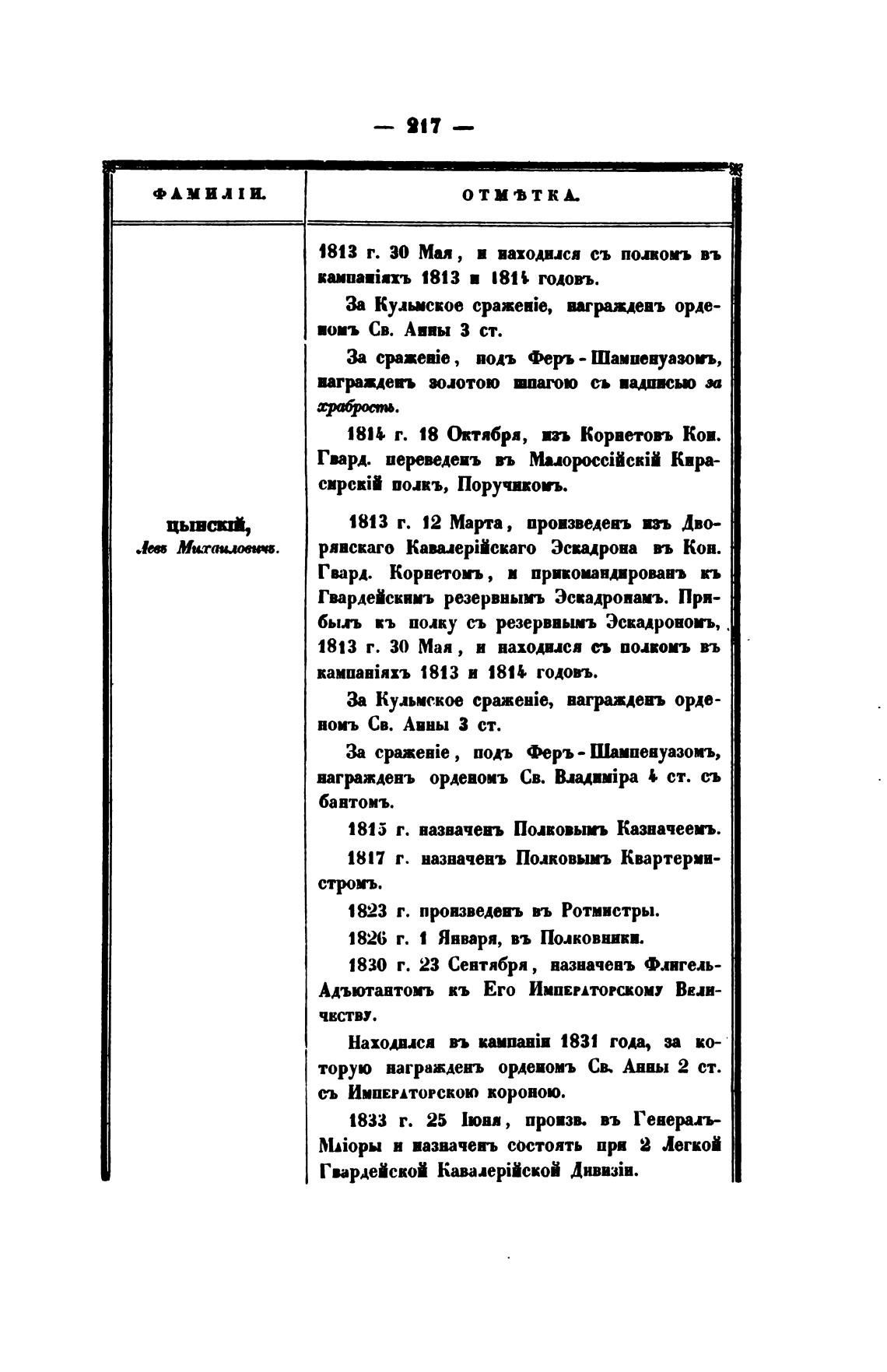 1813 г. 12 Марта, произведень во Дво-