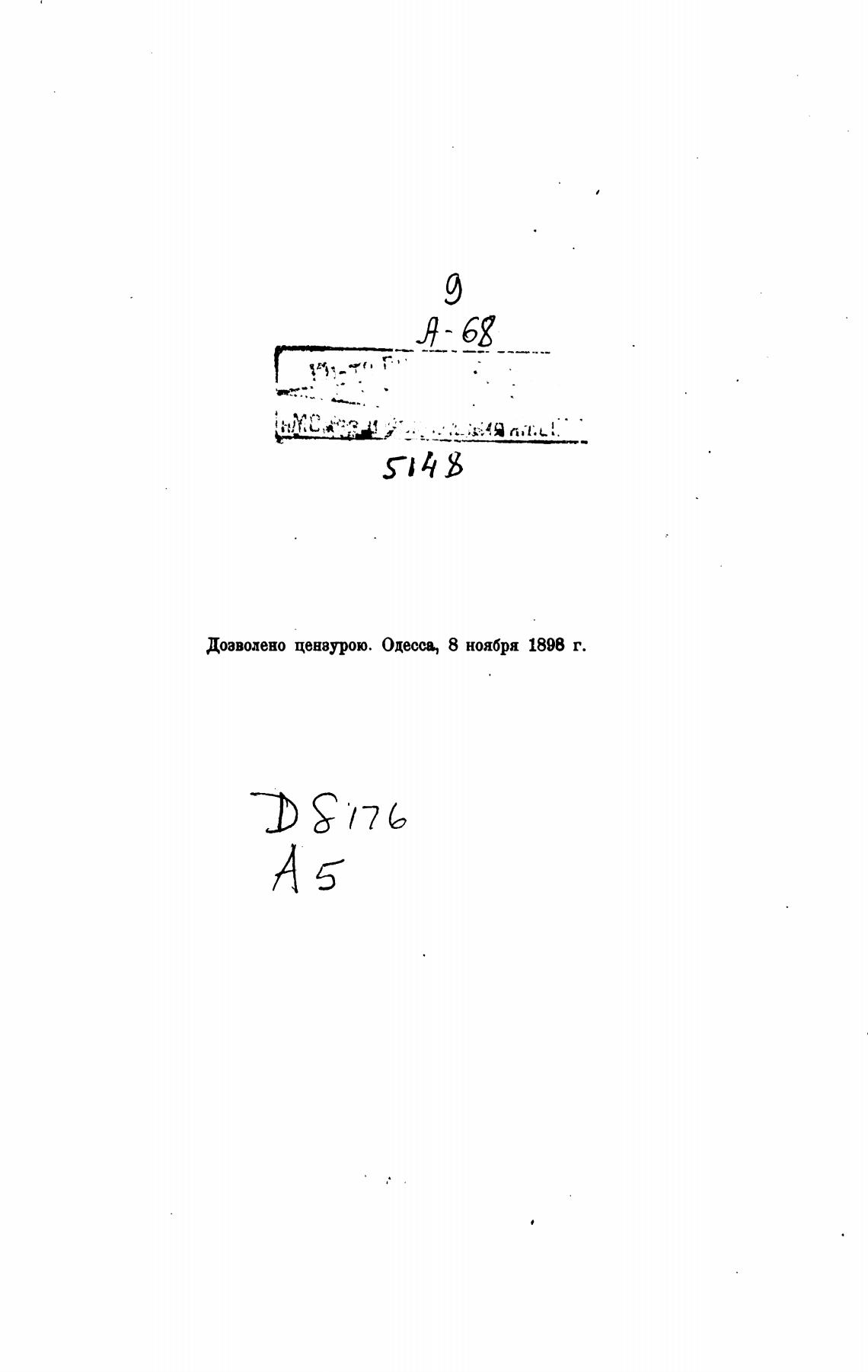 Дозволено цензурою. Одесса, 8 ноября 1898 г.