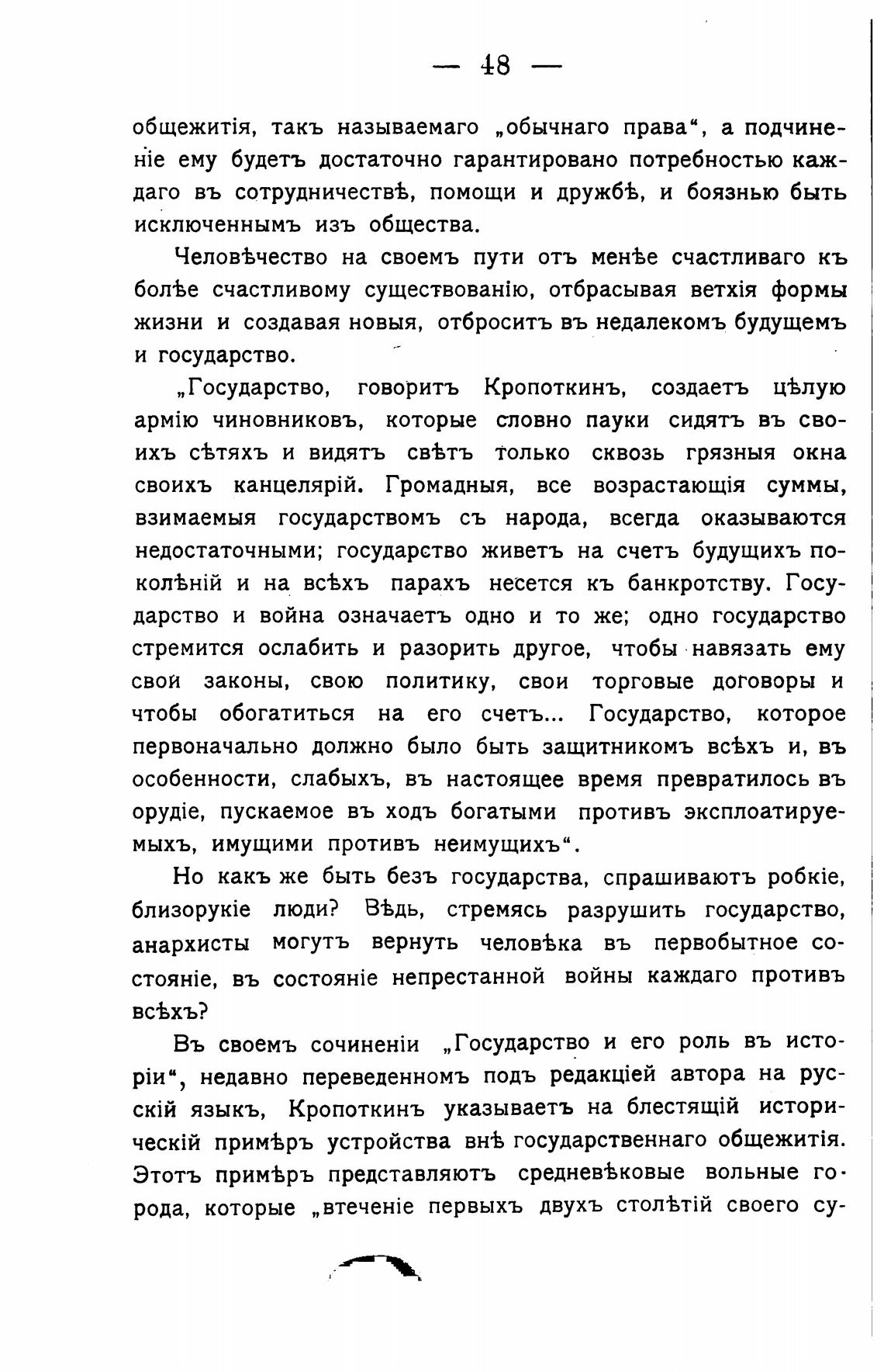 „ Государство, говорить Кропоткинъ, создаетъ ц%лую