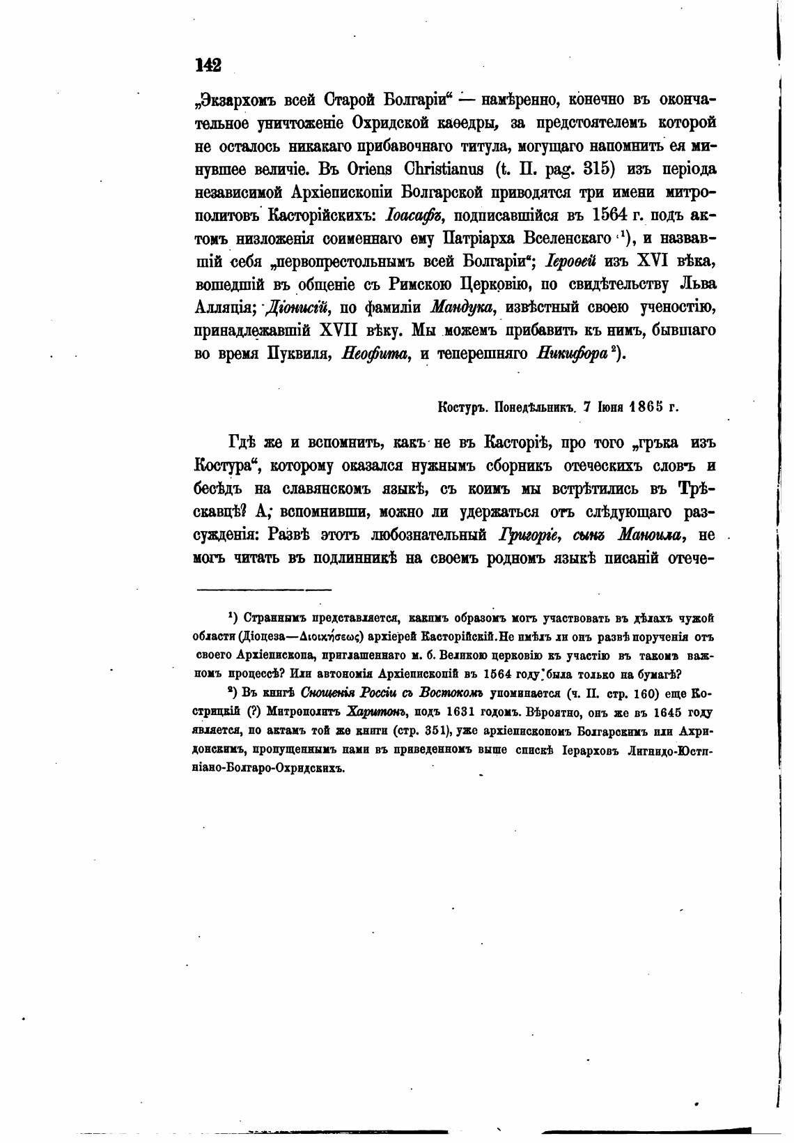 Костуръ. ПонедШьникъ. 7 [юнн 1865 г.
