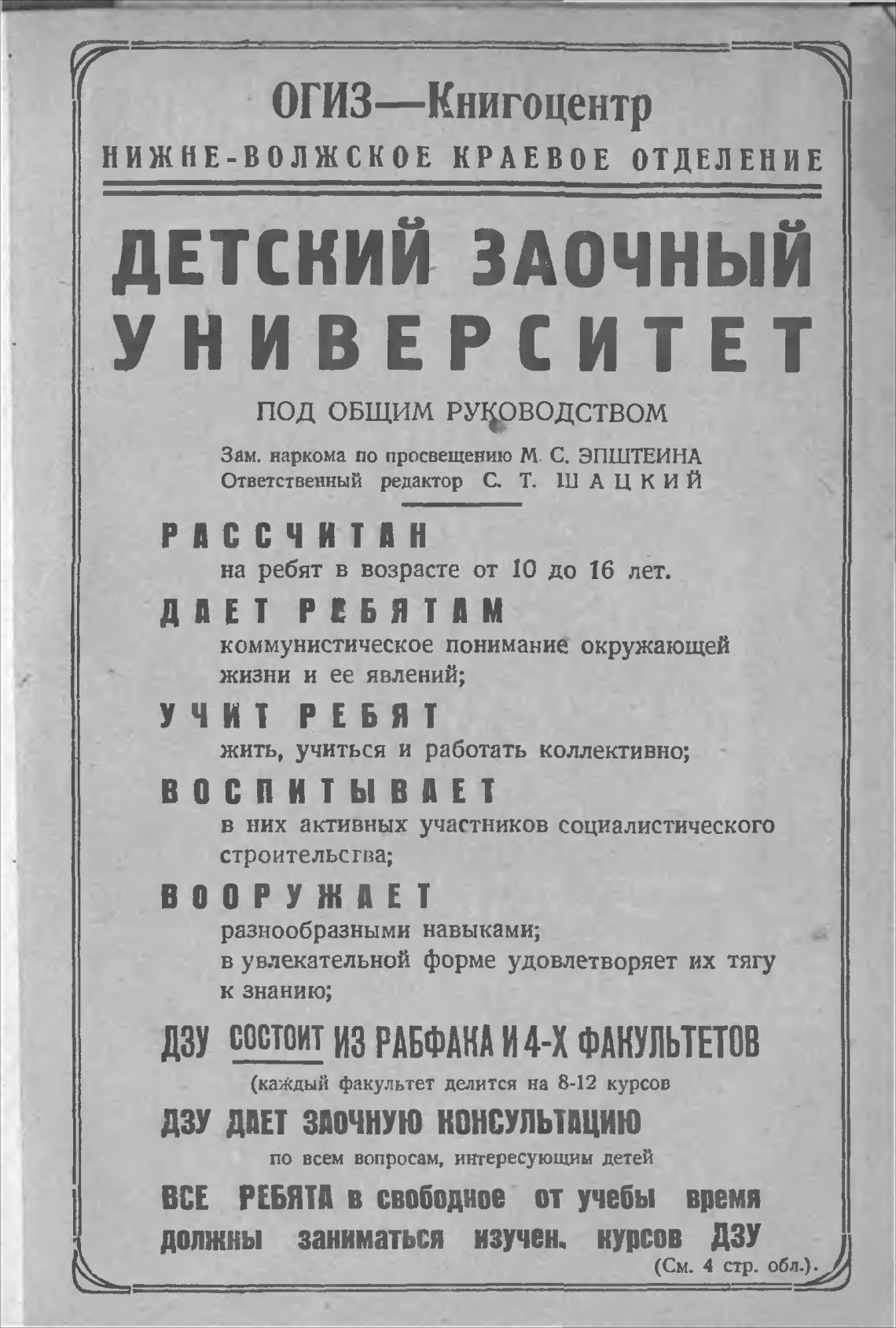 Зам. наркома по просвещению М. С. ЭПШТЕИНА