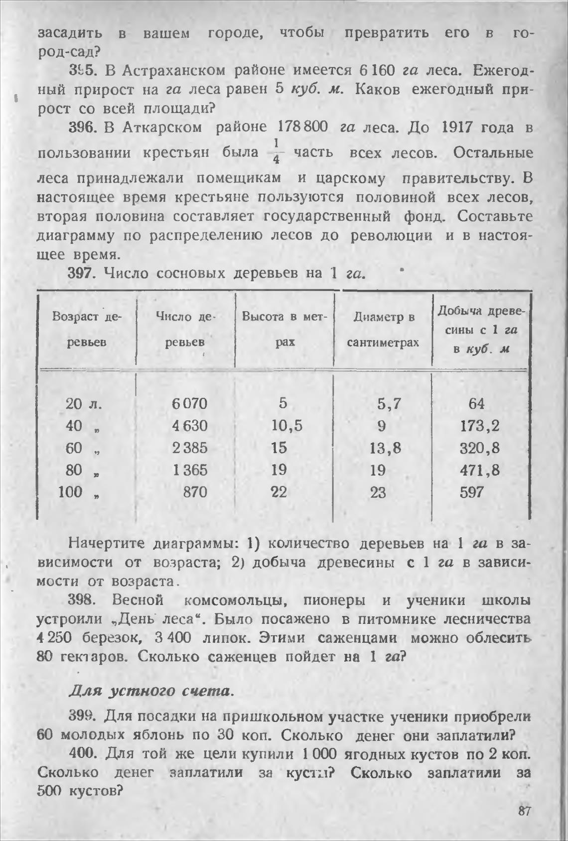 Начертите диаграммы: 1) количество деревьев на 1 ш в за-