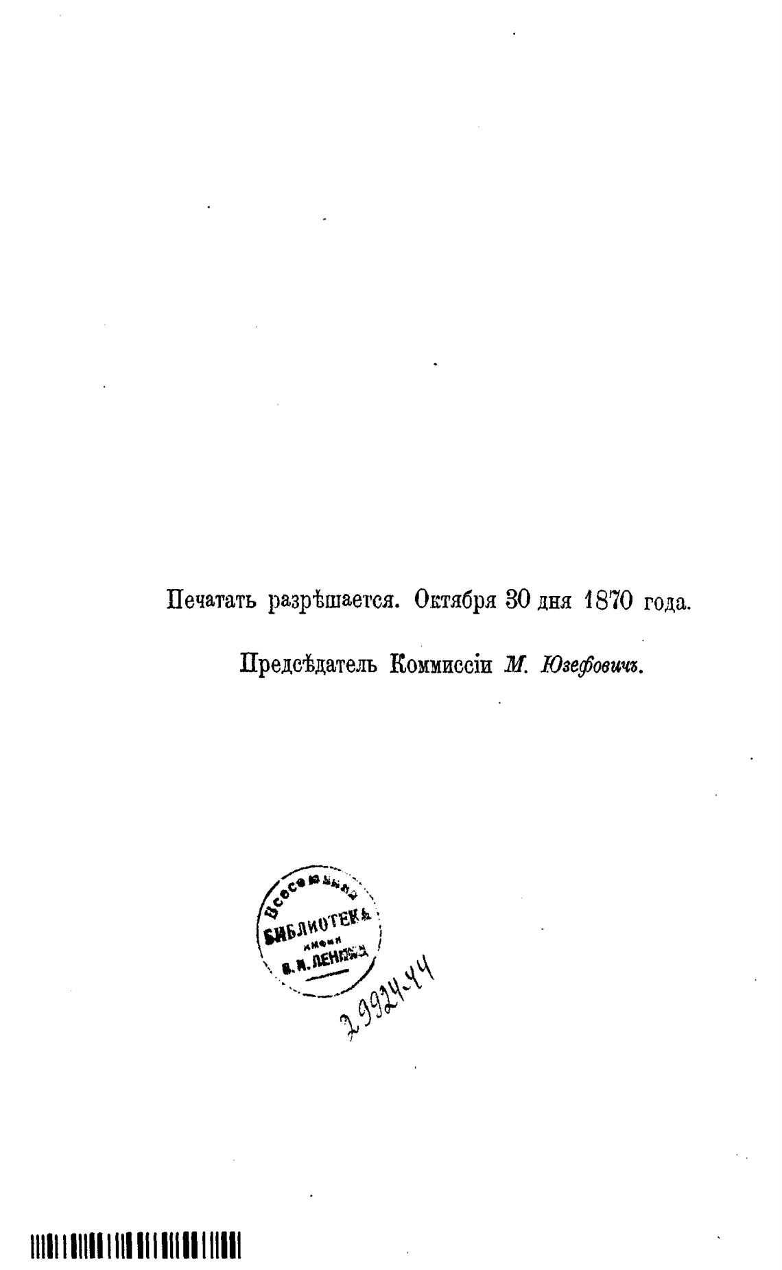 Печатать разрђшается. Октября 30 дня 1870 года.