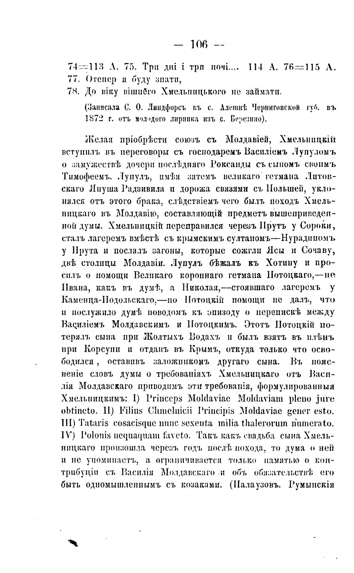(Записала С. О. Линдфорсъ въ с. АЛ(ЧИНТ, Черниговской туб. въ