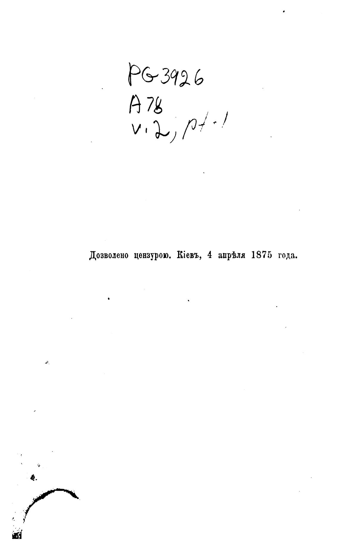 Дозволено цензурою. Шевъ, 4 ацргђля 1875 года.