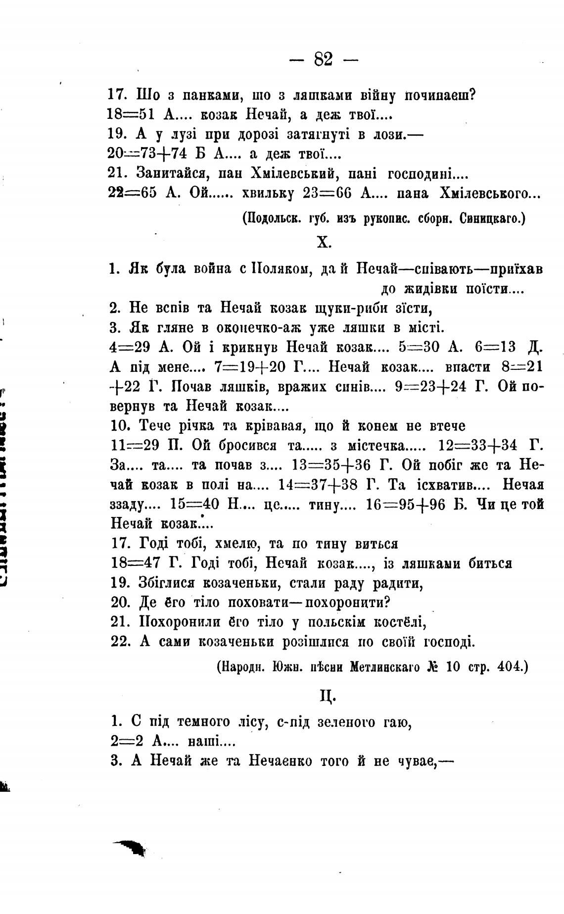 (Народн. Южи. П'Ьсни Метлинскаго Хо 10 стр. 404.)