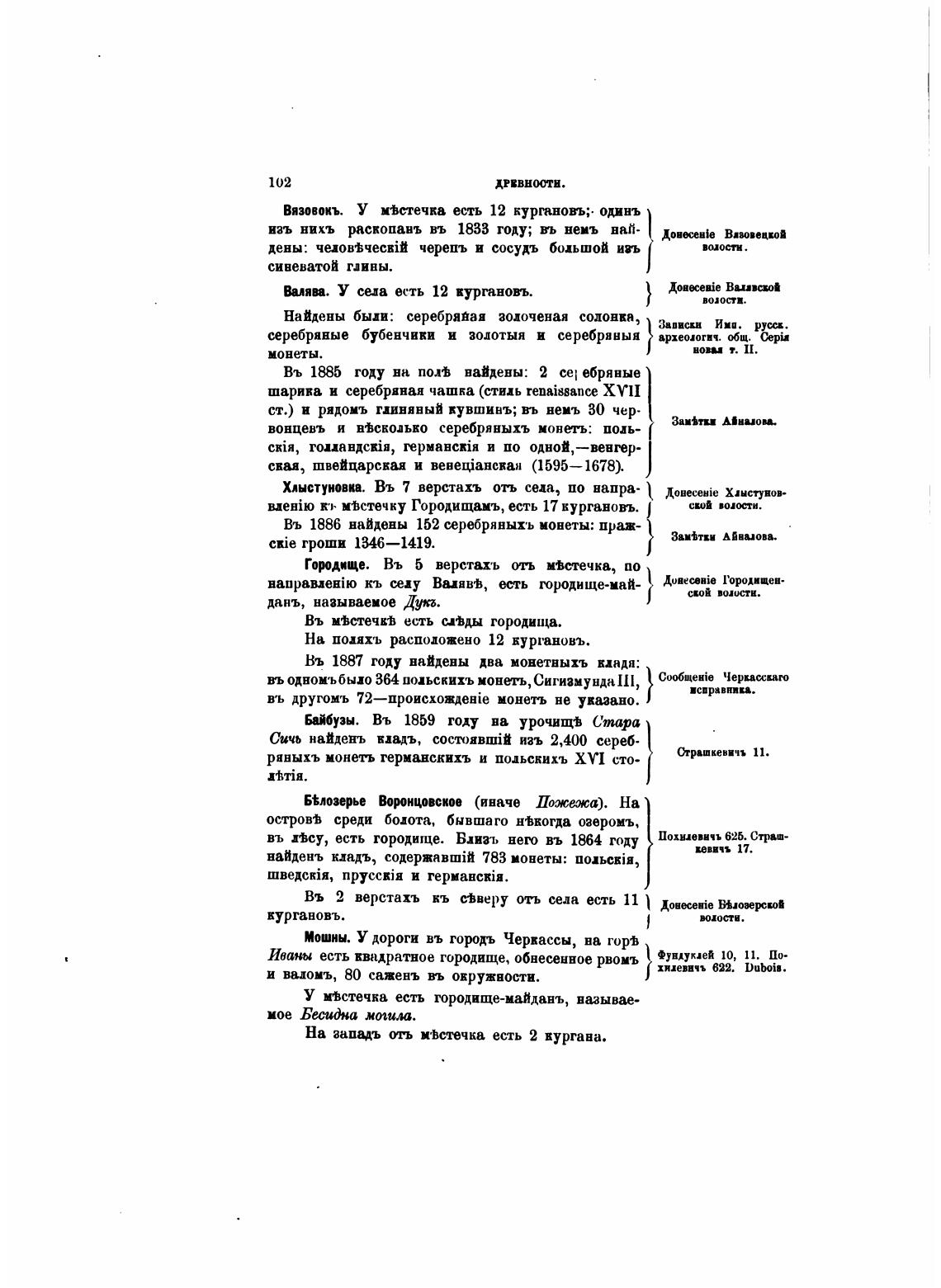 кт мјстечку Городищамъ, есть 17 кургановъ.