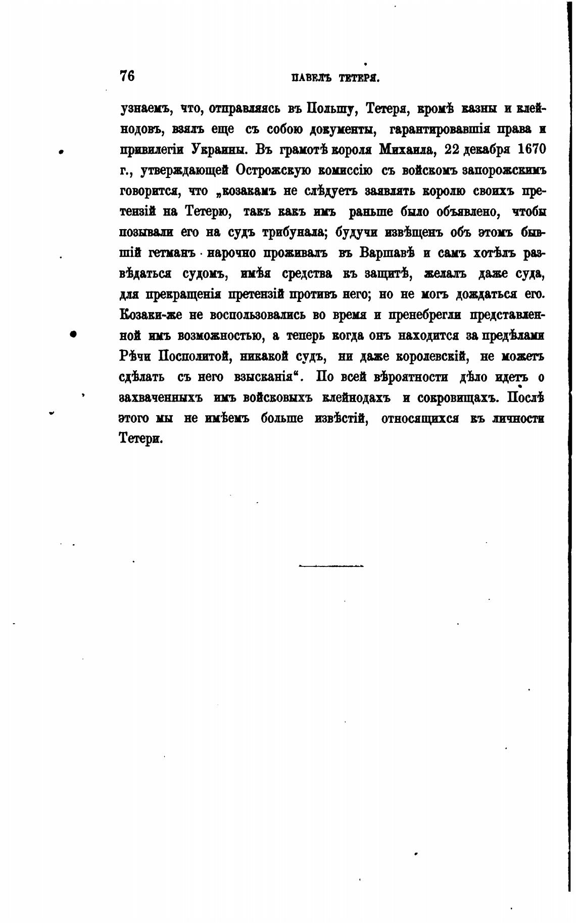 узнаецъ, что, отправляясь въ Польшу, Тетеря, казны и влей-