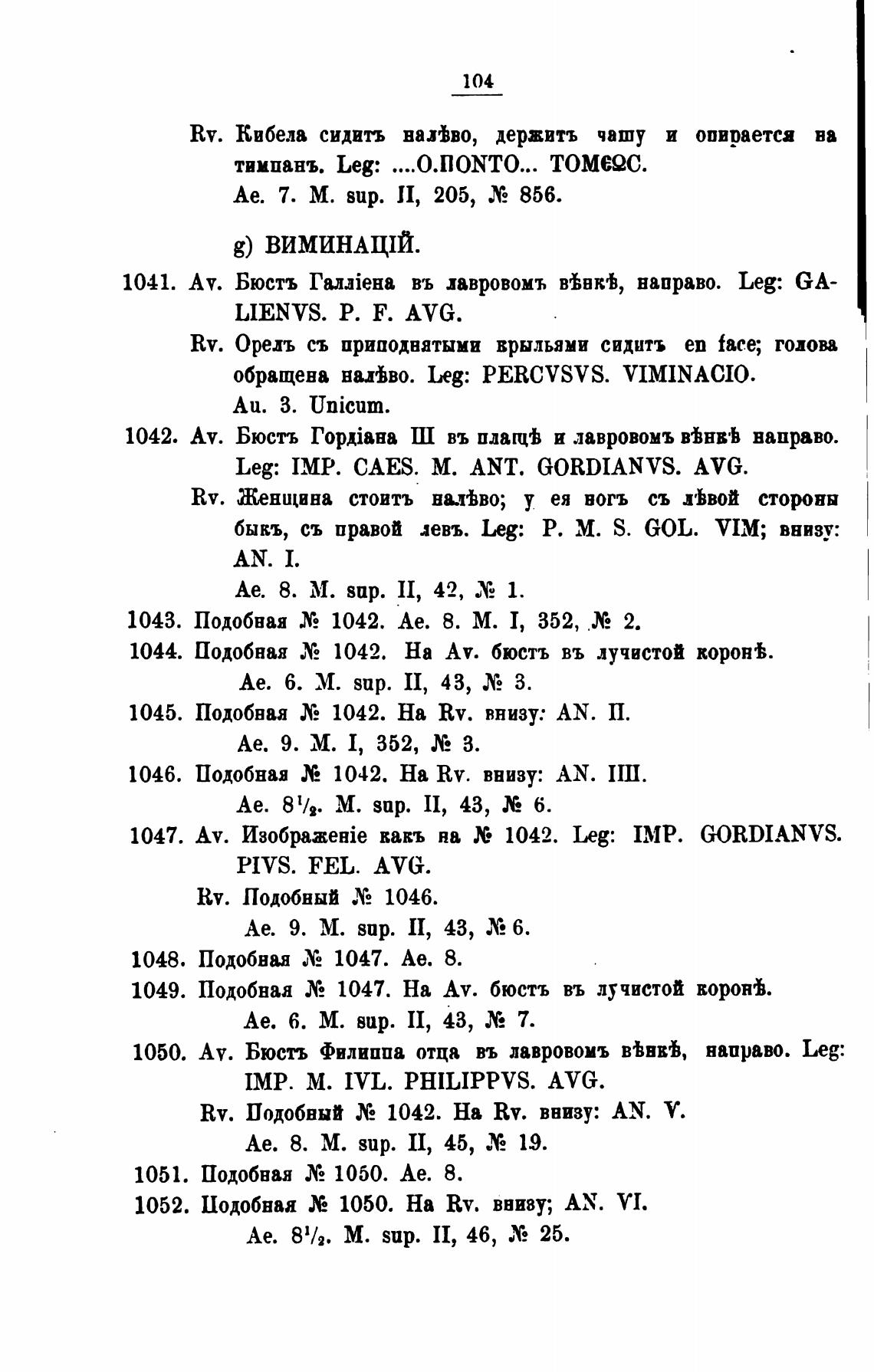 1043. Подобная 1042. Ае. 8. М. 1, 352, 2.
