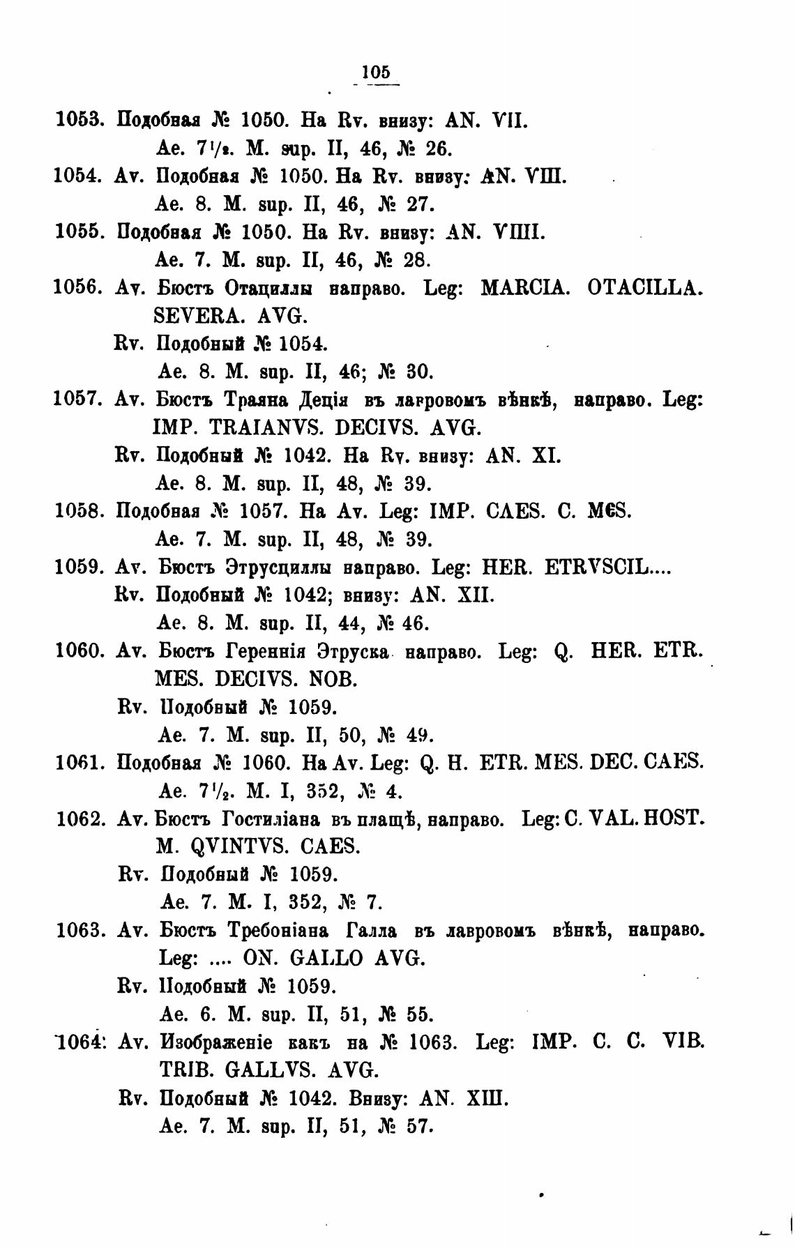 1058. подобная Х, 1057. На Av. Leg: пар. С. Mes.